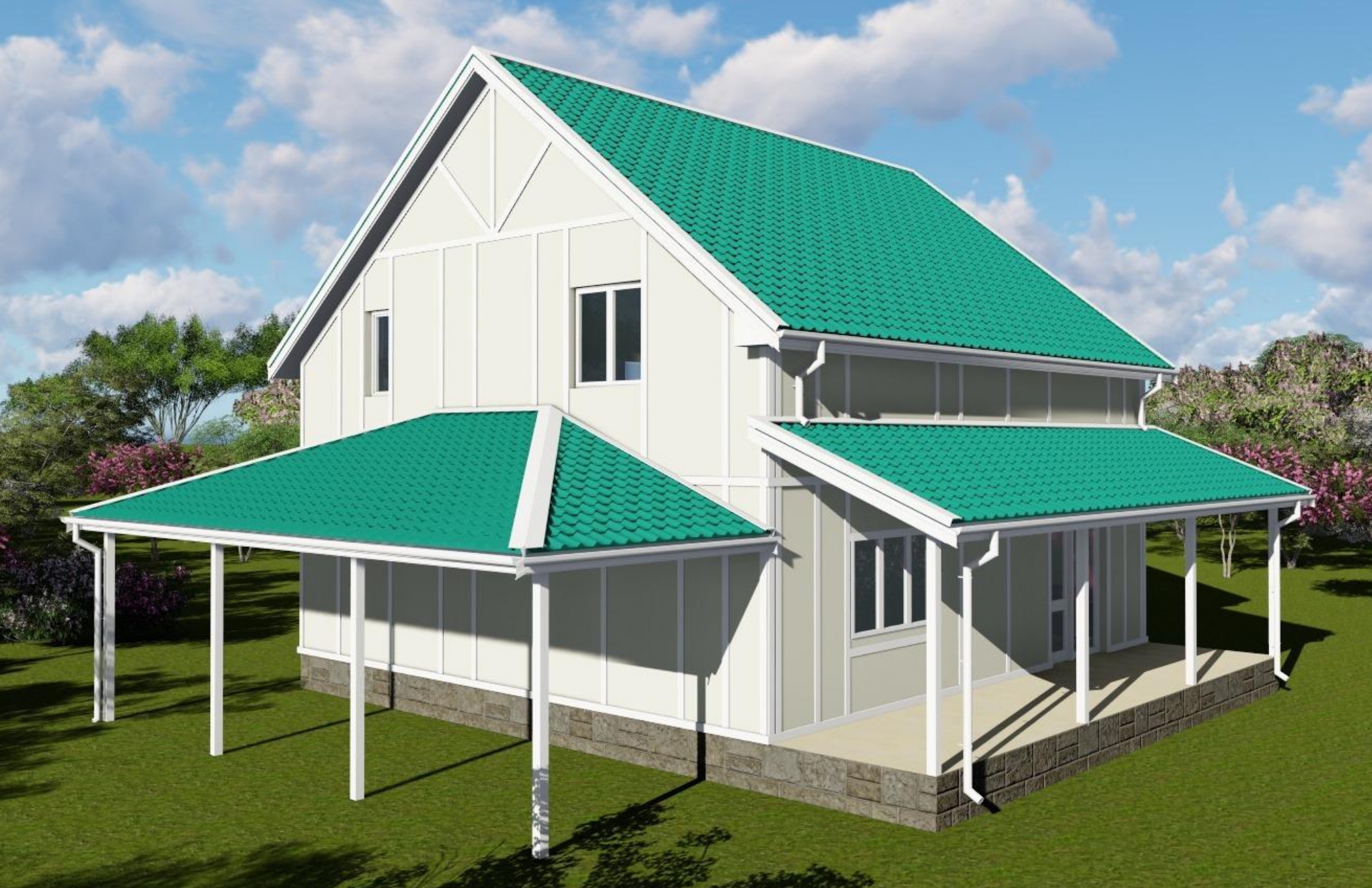 Крышу мы выполняем из различных материалов, применяя в том числе СИП панели. В качестве кровельного материала мы используем: металлочерепицу и профиль, битумную и керамическую черепицу, фальцевую кровлю собственного производства. Также производим кровельные-фальцевые сэндвич панели.