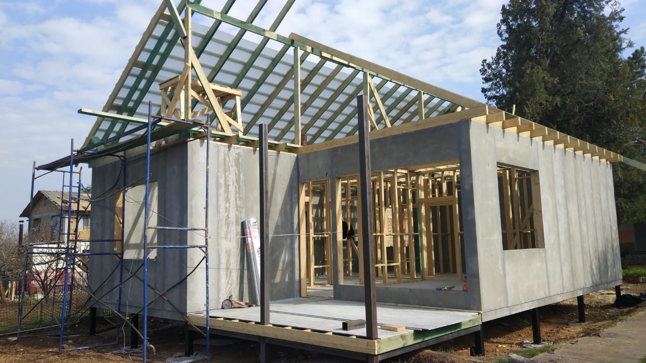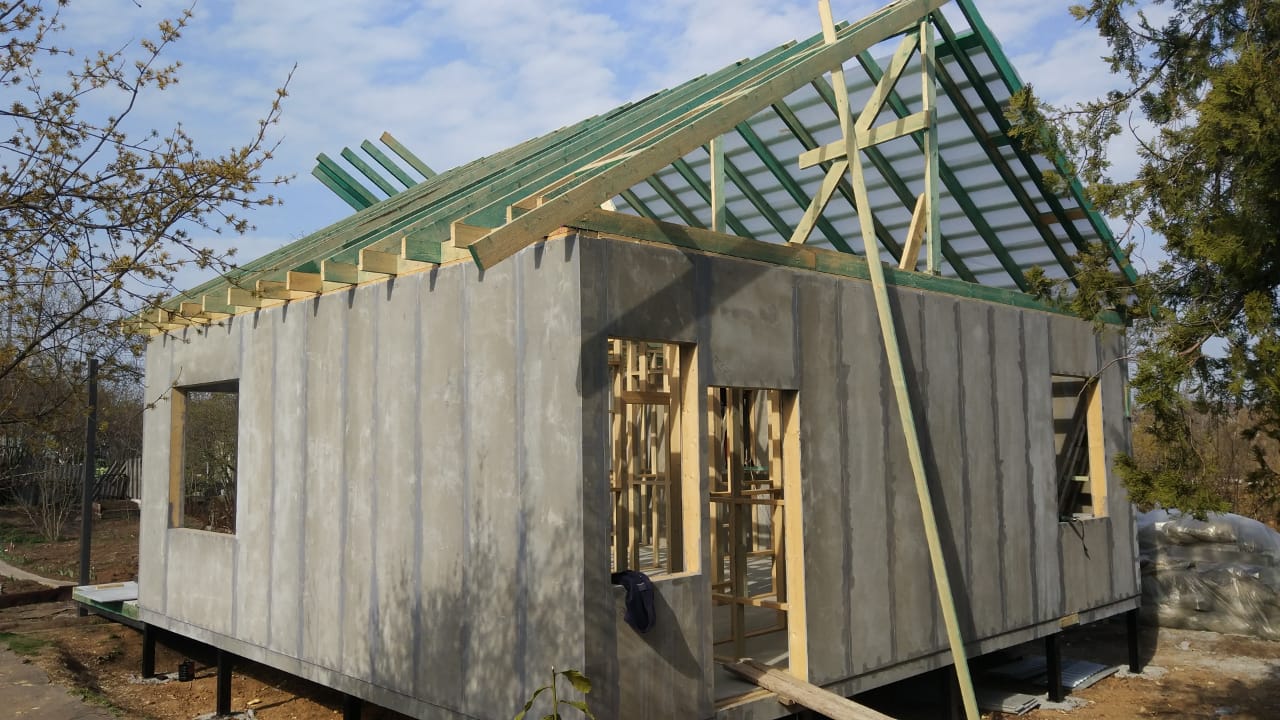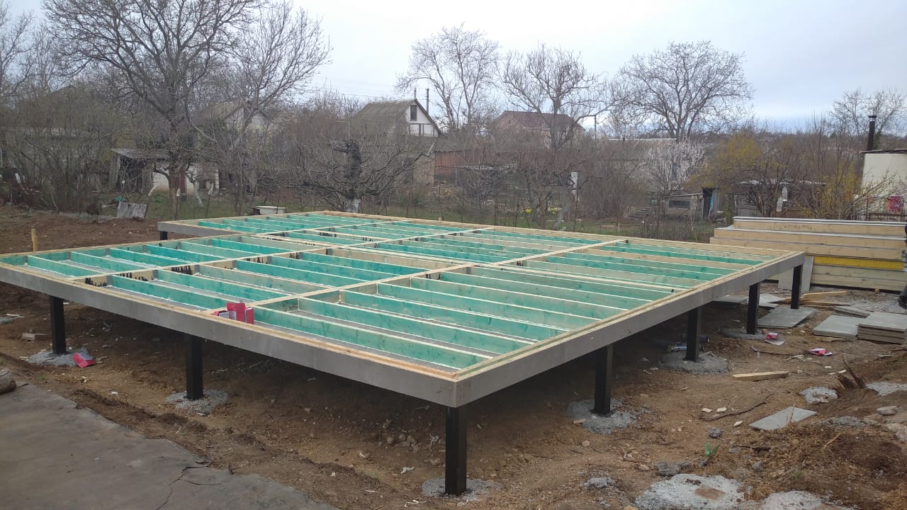 Ростверк изготовлен из калиброванного клееного бруса и защищен снаружи цементно-стружечной плитой