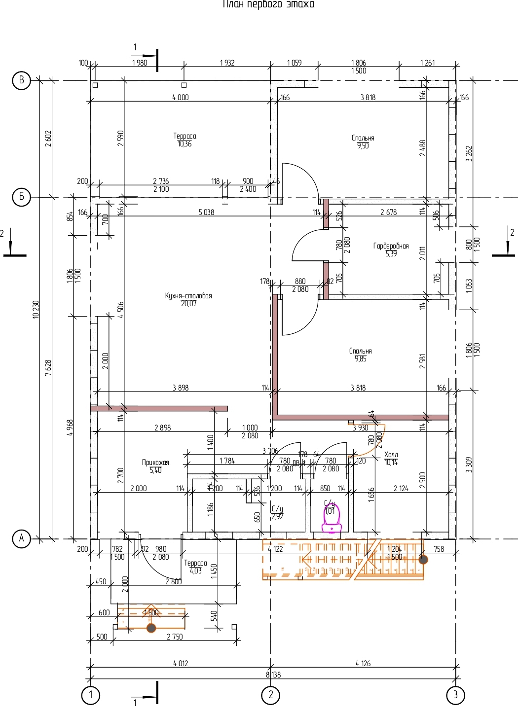 Площадь застройки – 87.28 м2