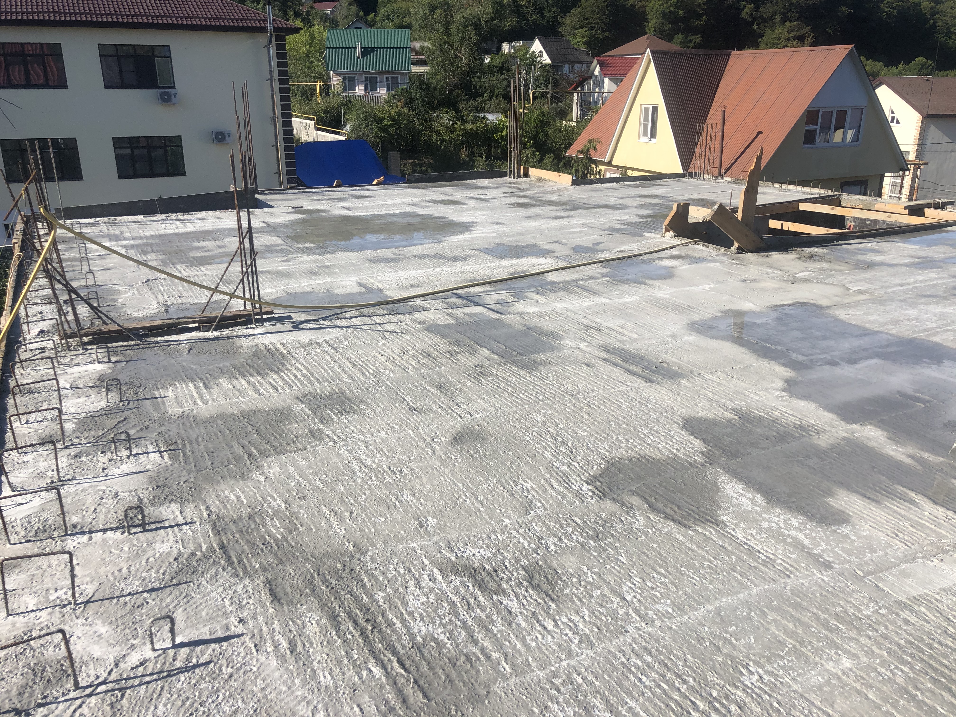 Ростверк изготовлен из калиброванного клееного бруса и защищен снаружи цементно-стружечной плитой