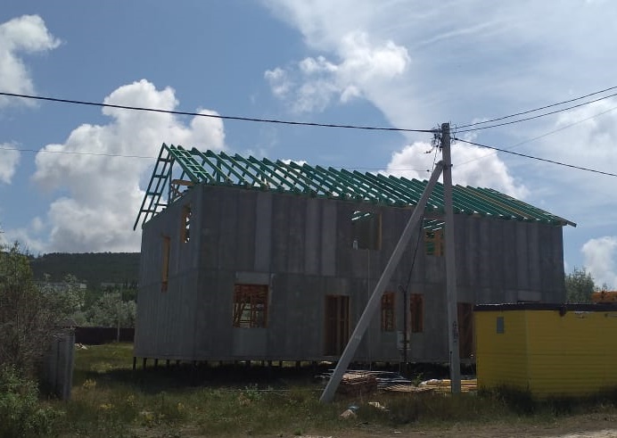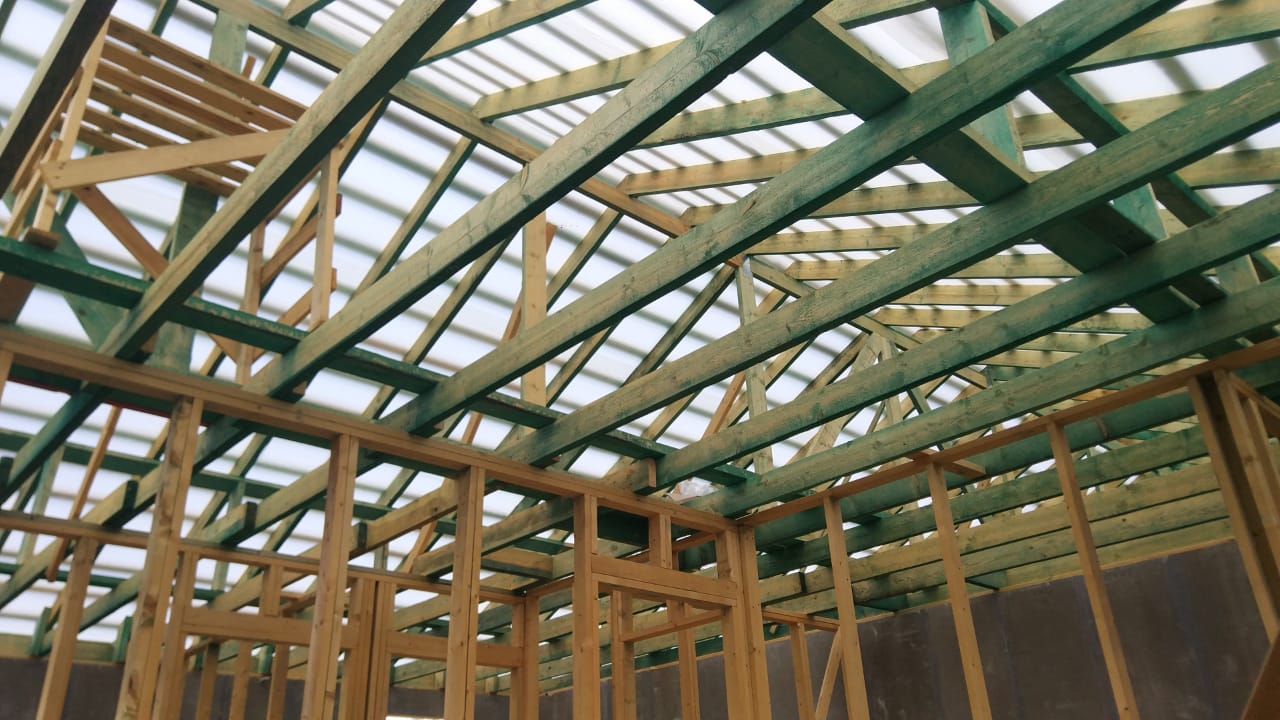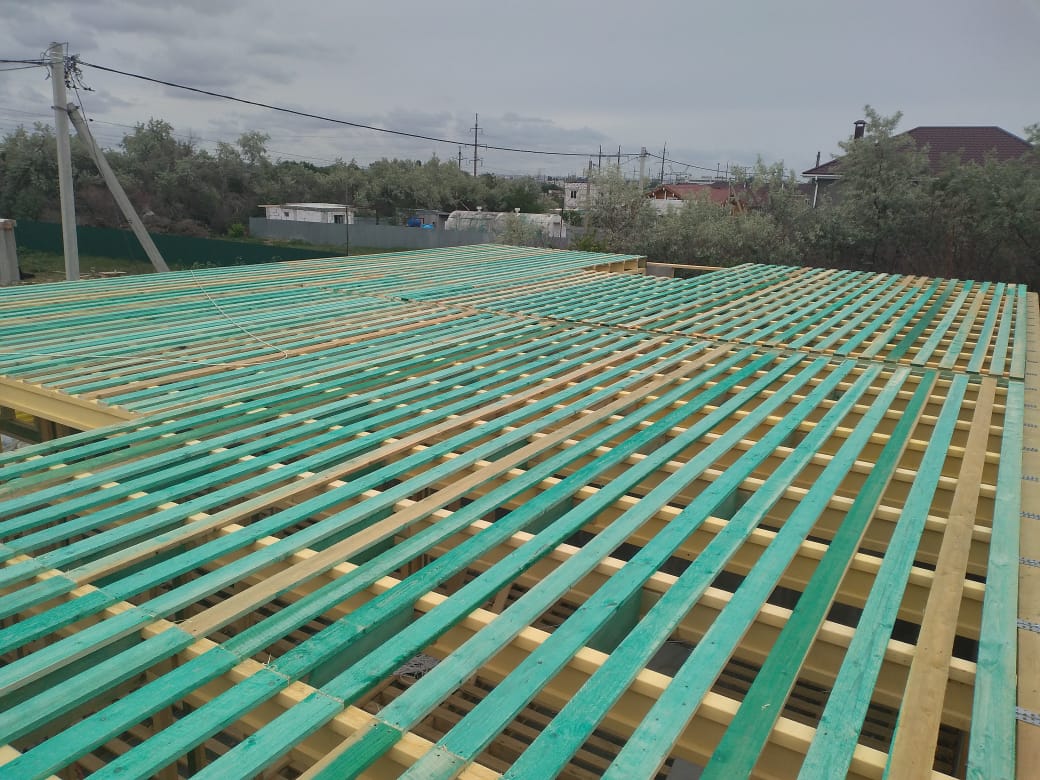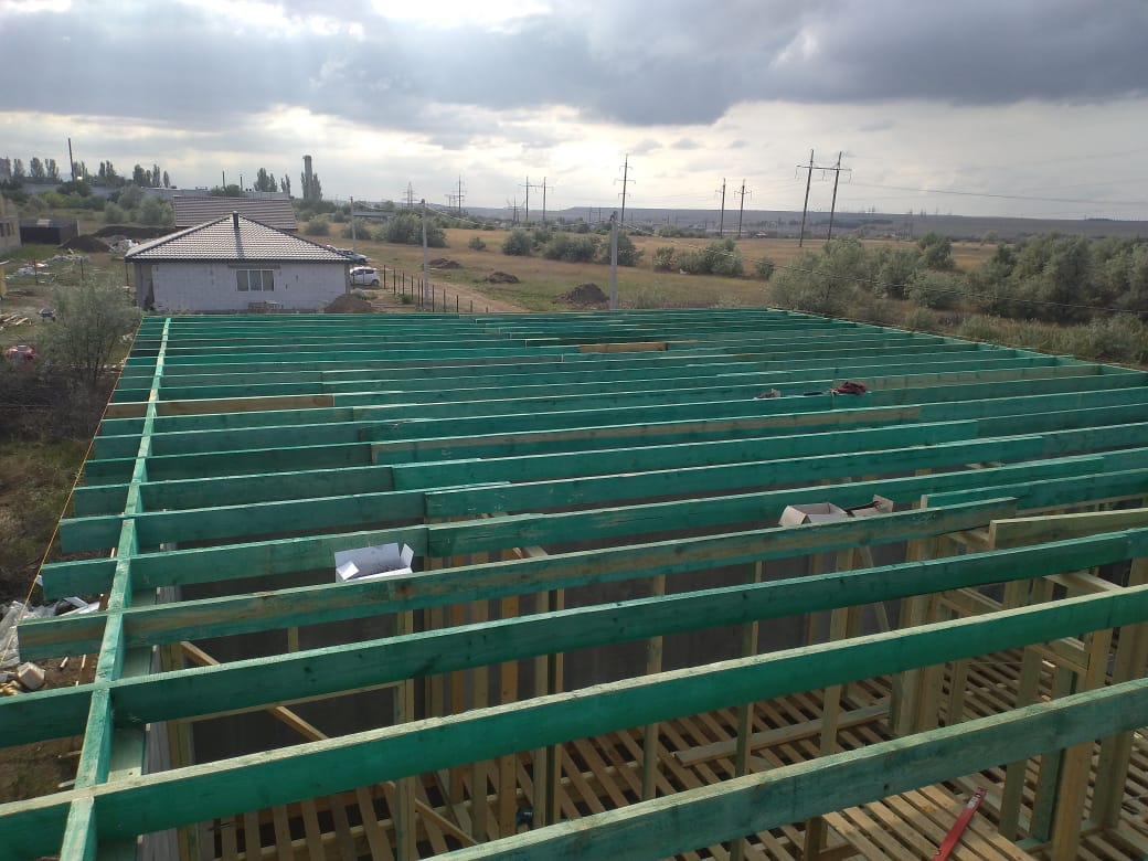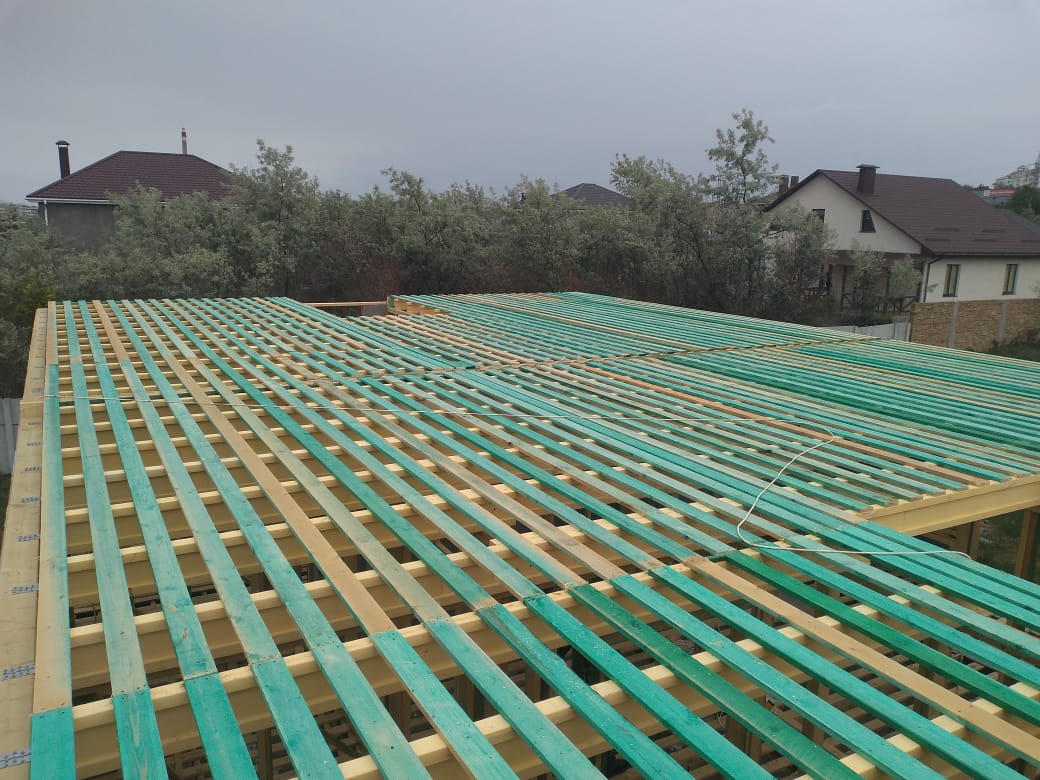 Кровля может быть построена из бруса 150х50мм или SIP панелей. В качестве кровельного материала можно использовать: металлочерепицу, битумную и керамическую черепицу. Также производим кровельные шовные сэндвич-панели.