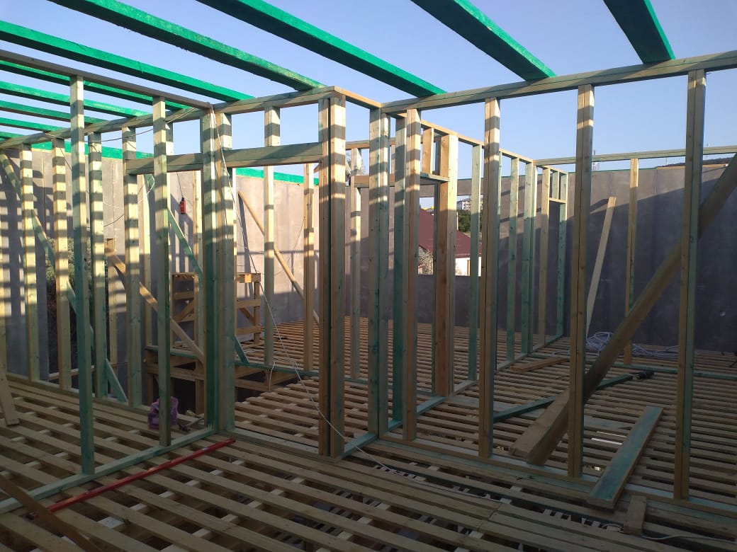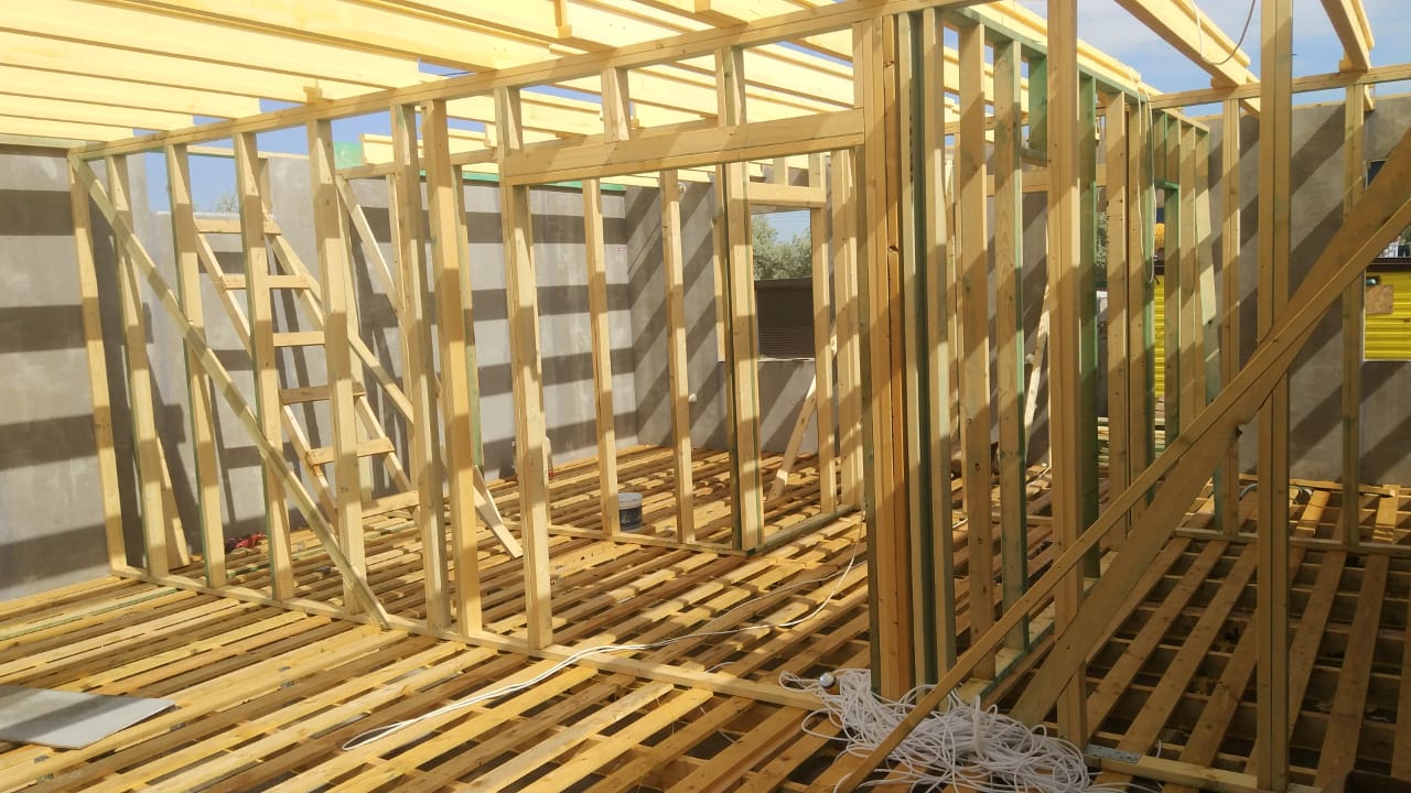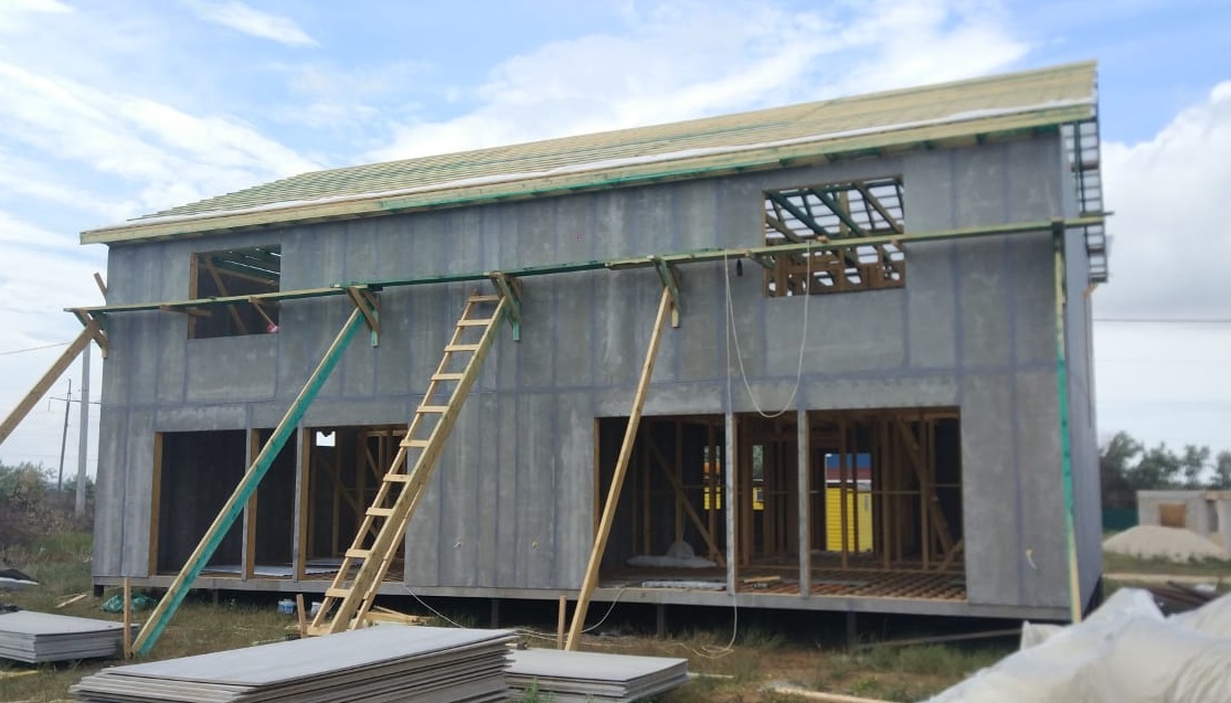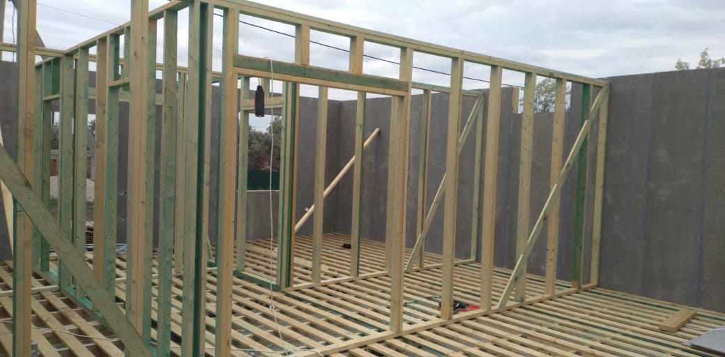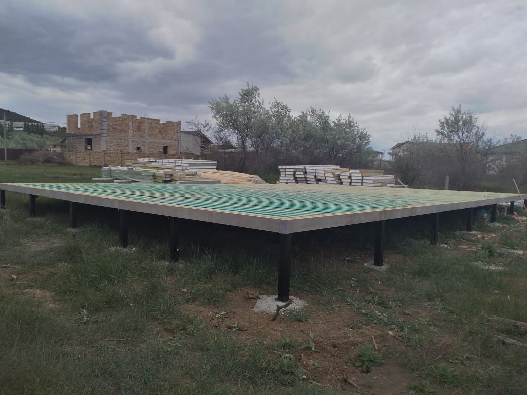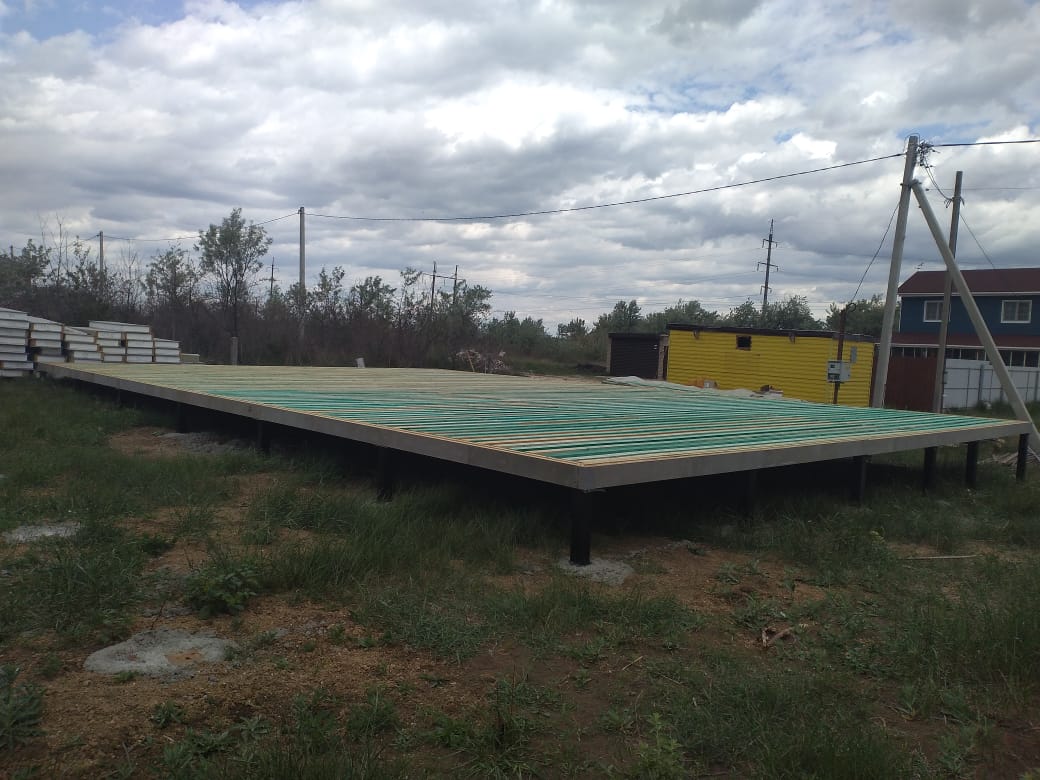 Ростверк изготовлен из калиброванного клееного бруса и защищен снаружи цементно-стружечной плитой