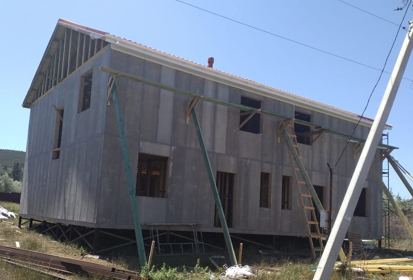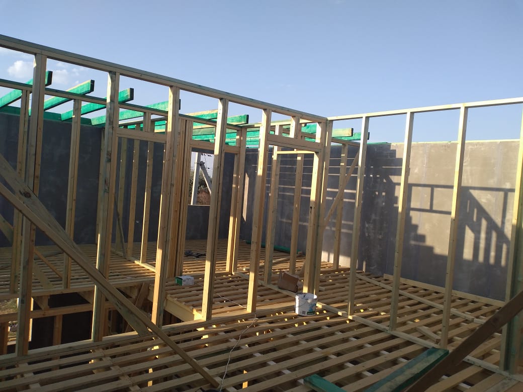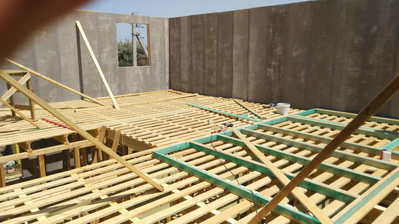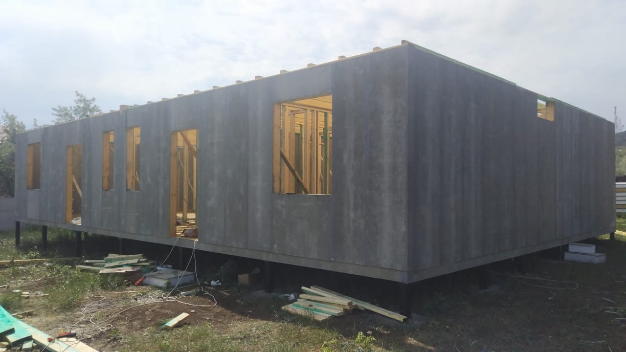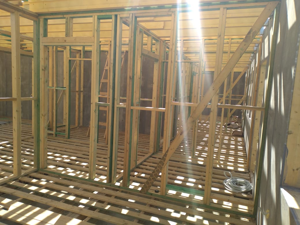 Ростверк изготовлен из калиброванного клееного бруса и защищен снаружи цементно-стружечной плитой