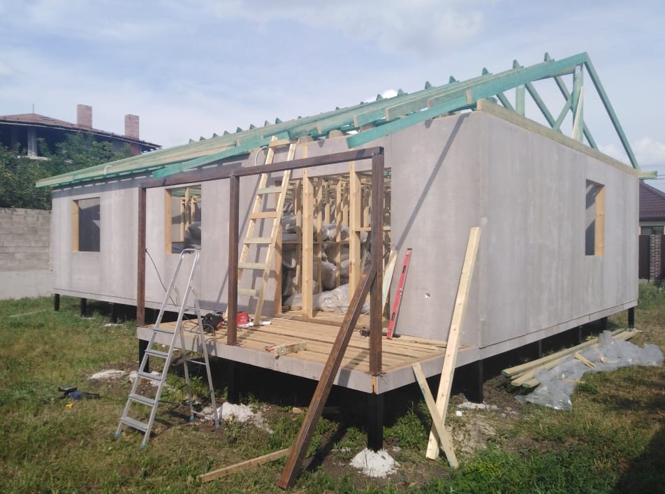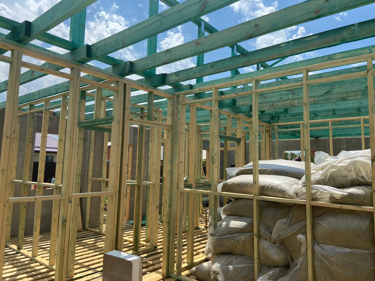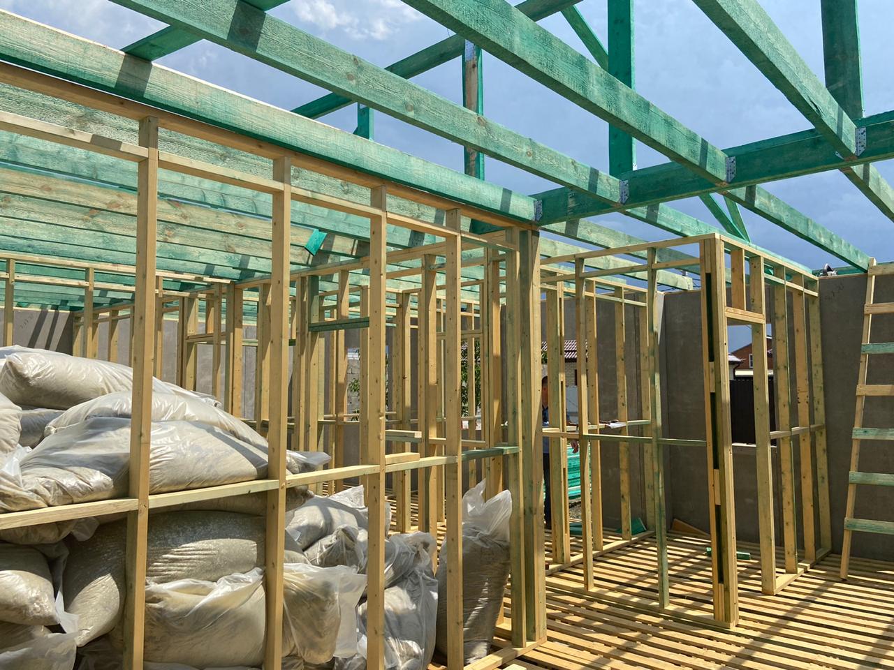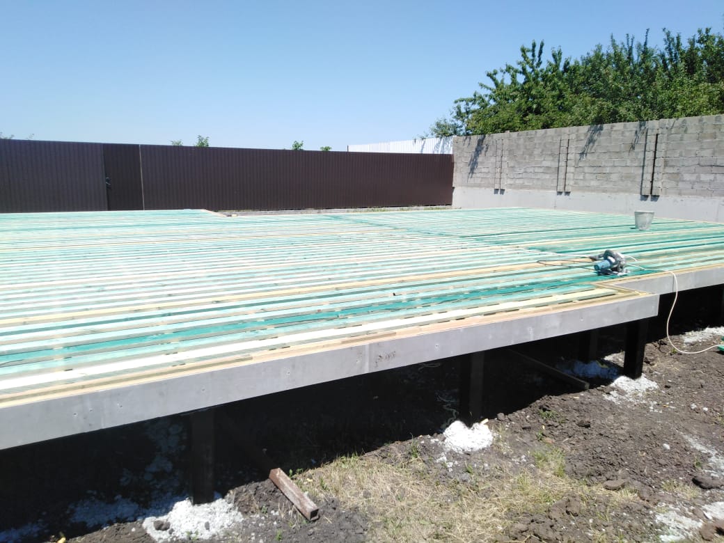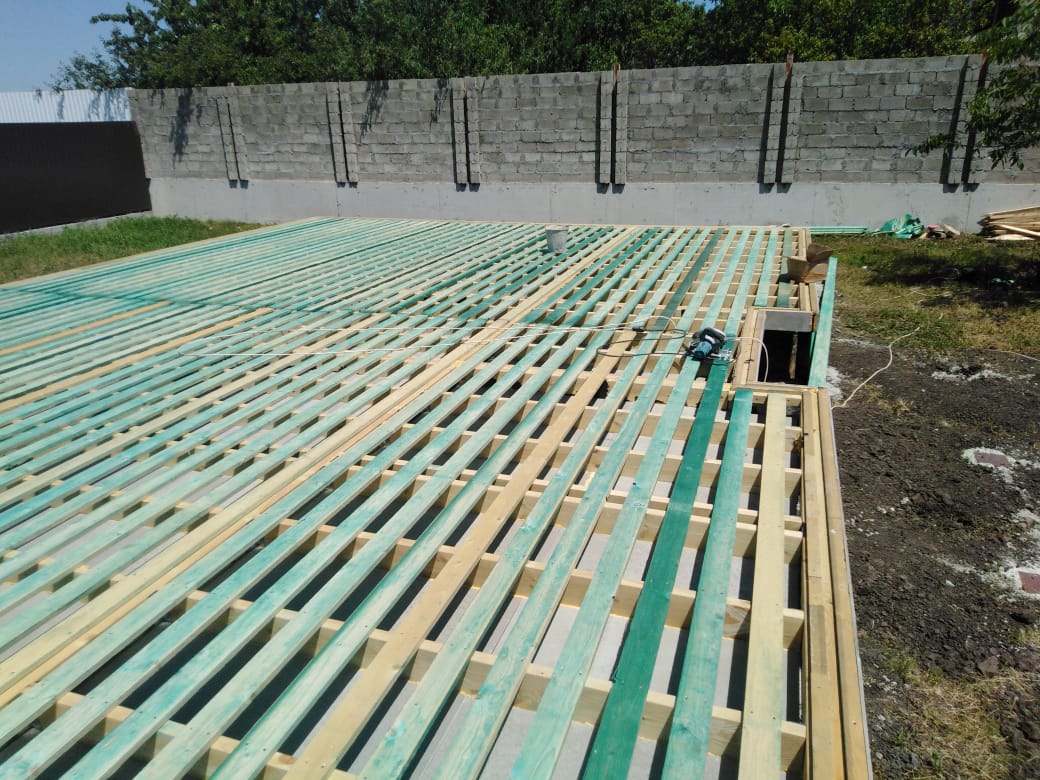 Ростверк изготовлен из калиброванного клееного бруса и защищен снаружи цементно-стружечной плитой