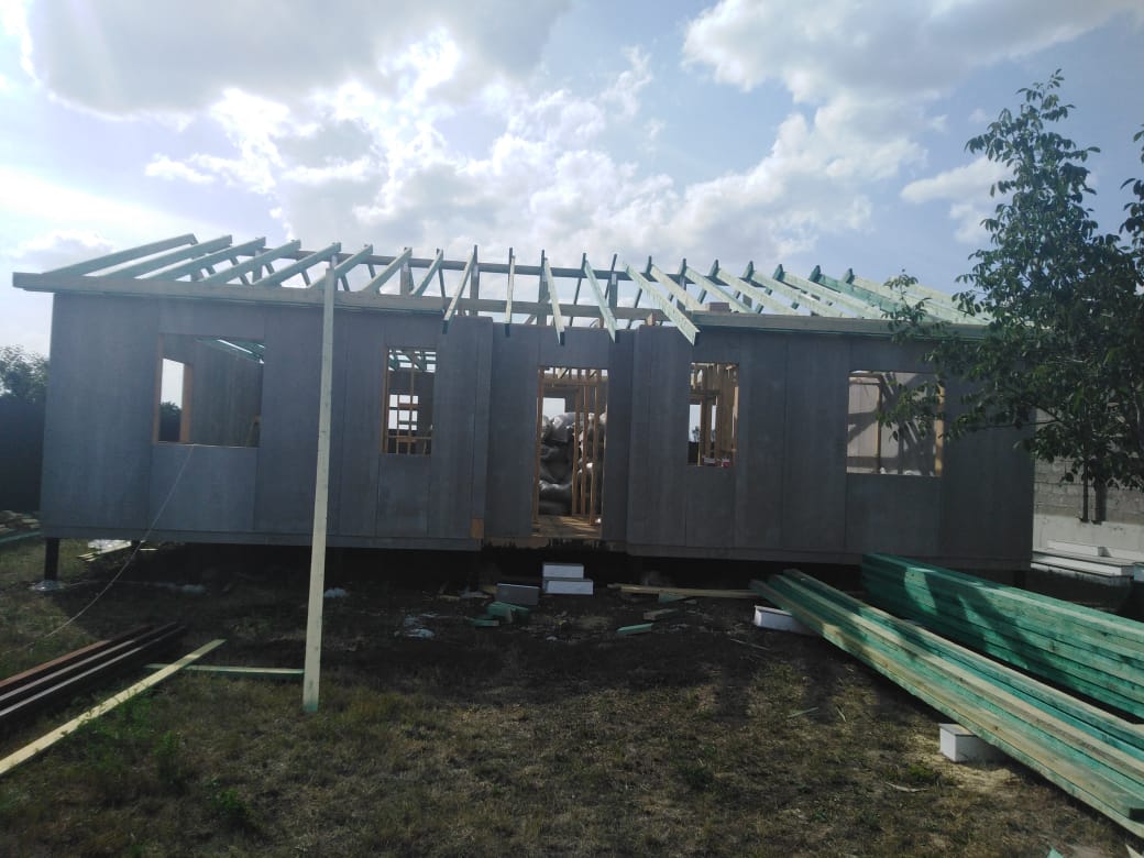 Кровля может быть построена из бруса 150х50мм или SIP панелей. В качестве кровельного материала можно использовать: металлочерепицу, битумную и керамическую черепицу. Также производим кровельные шовные сэндвич-панели.