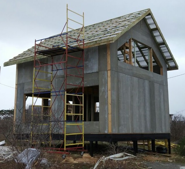 Ростверк изготовлен из калиброванного клееного бруса и защищен снаружи цементно-стружечной плитой