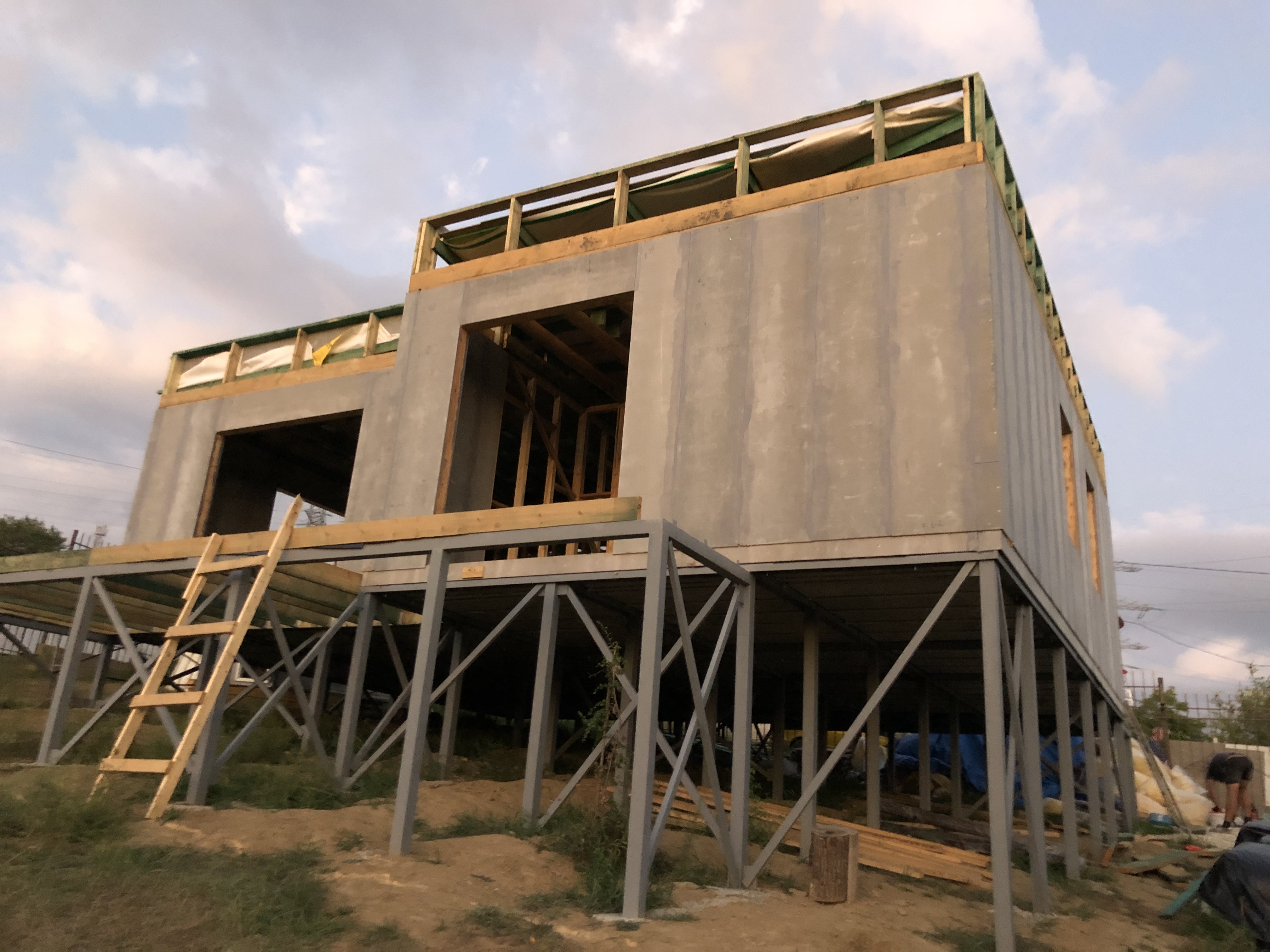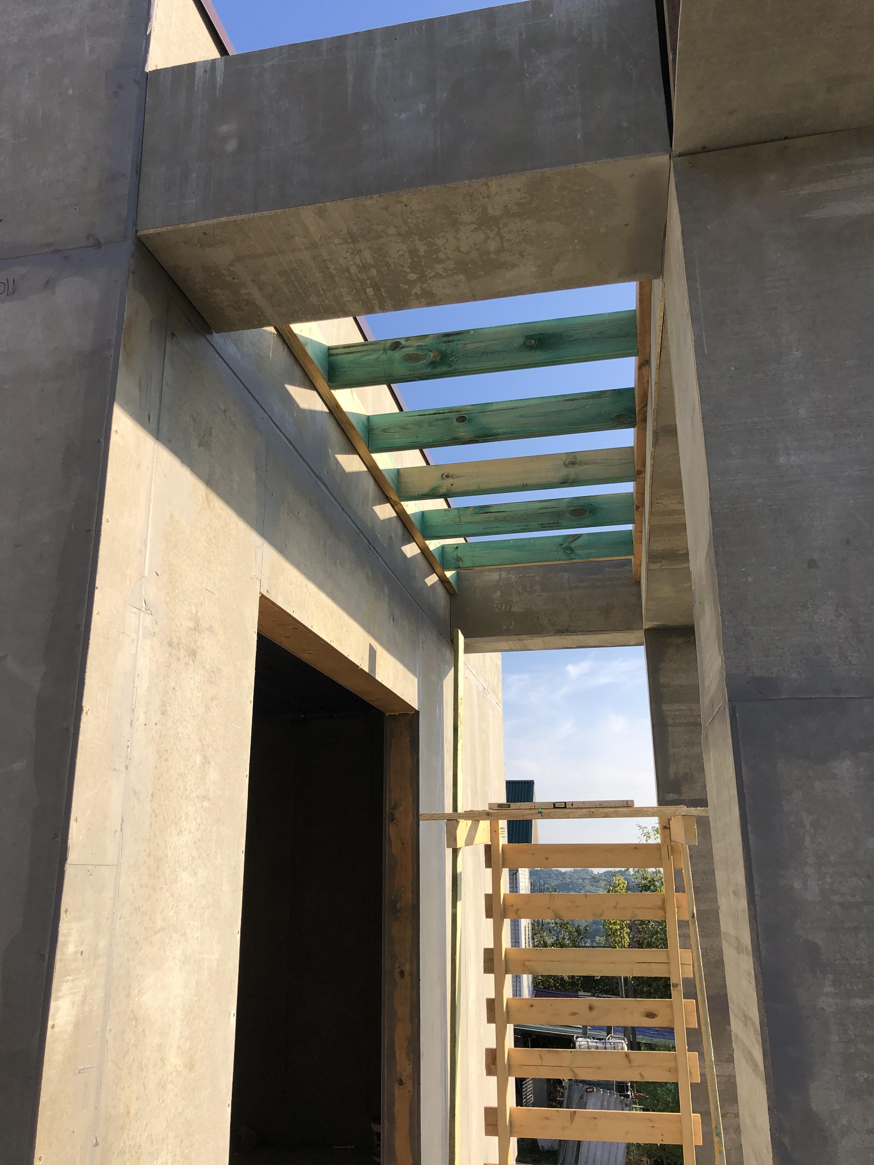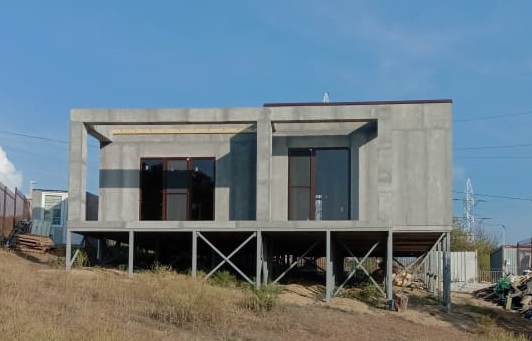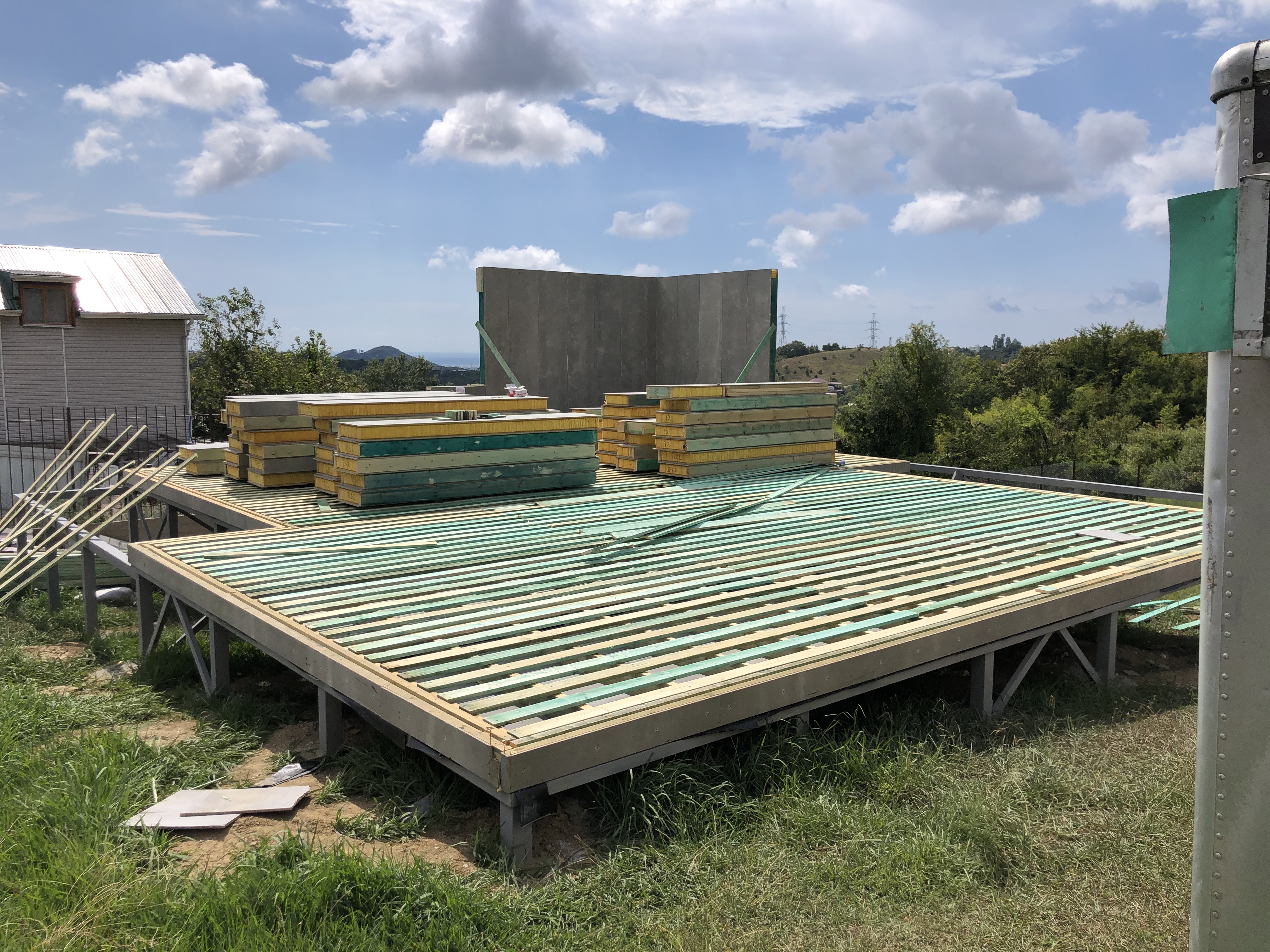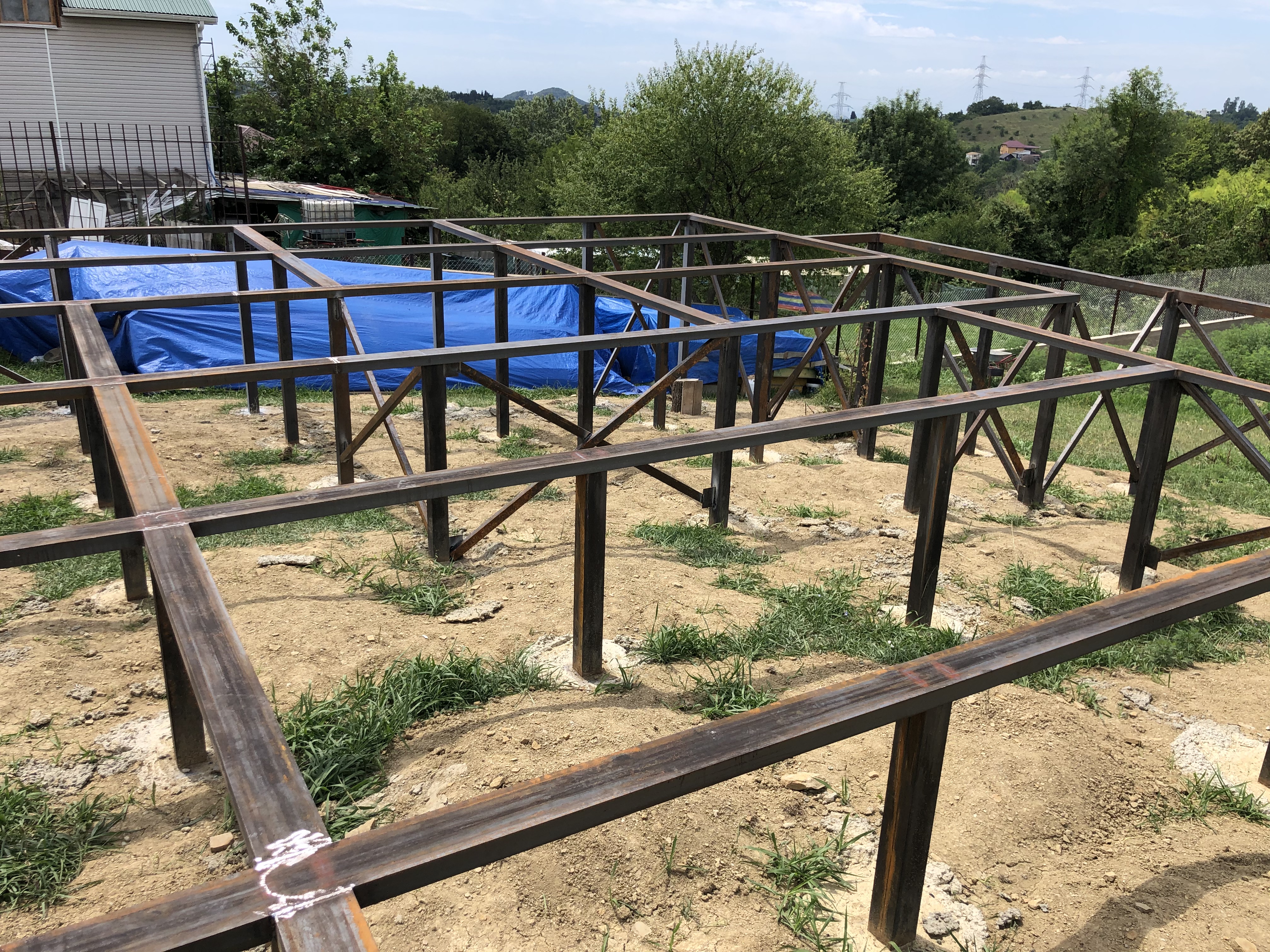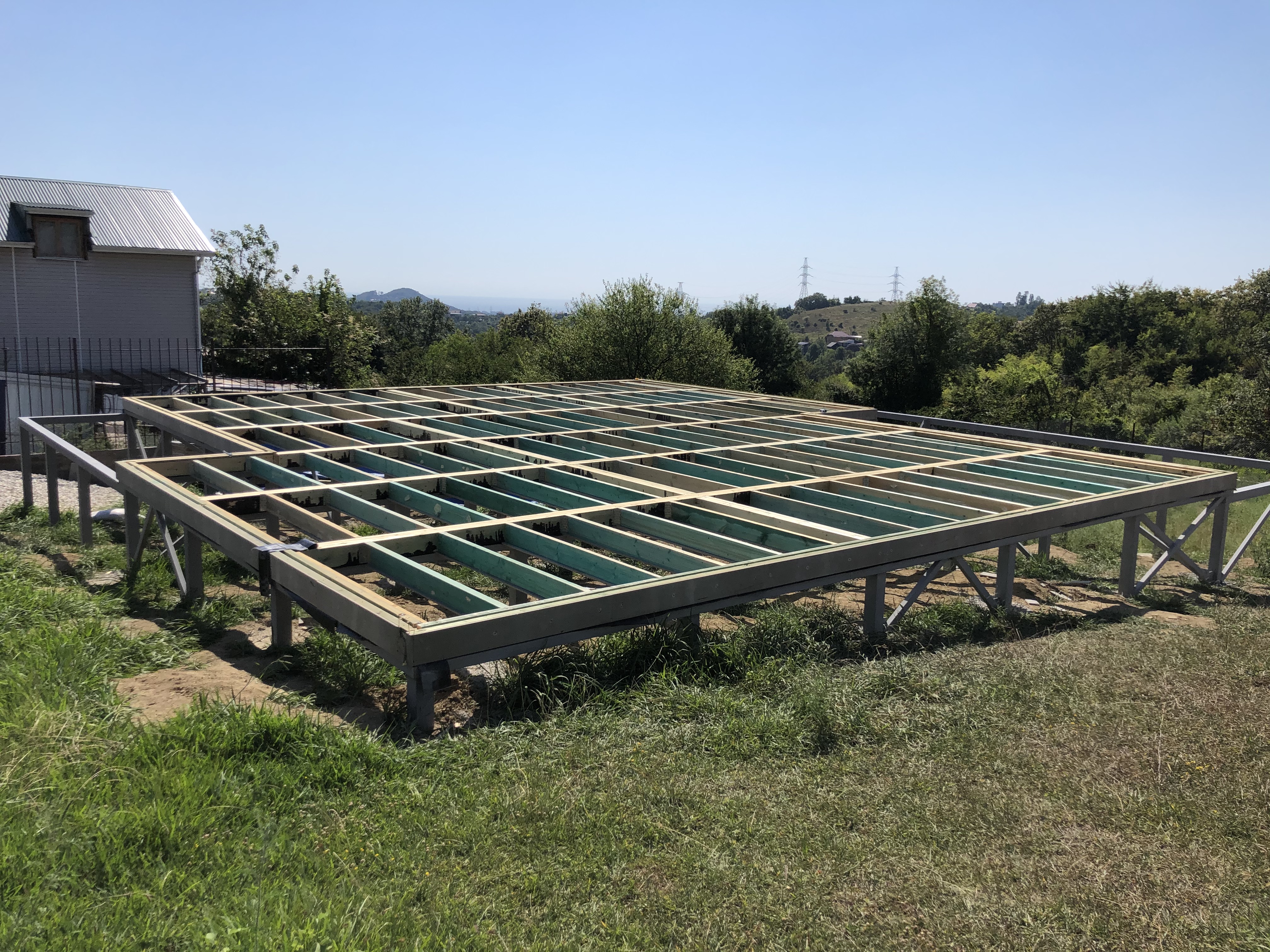 Ростверк изготовлен из калиброванного клееного бруса и защищен снаружи цементно-стружечной плитой