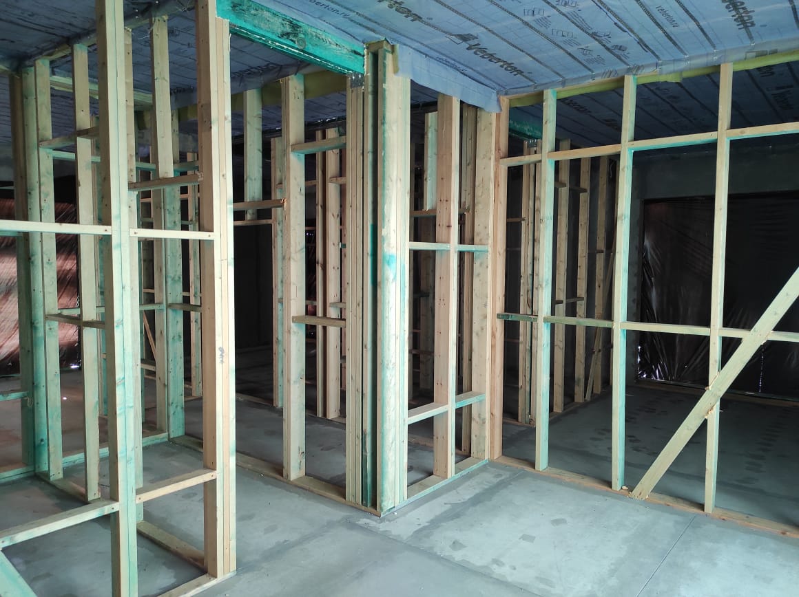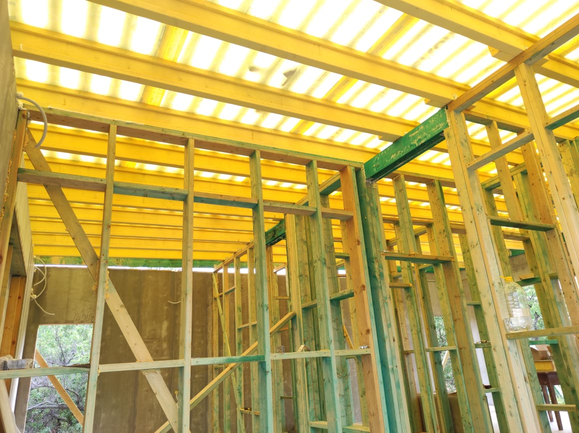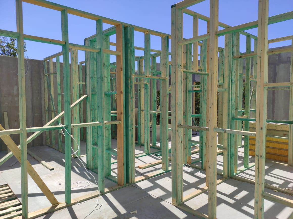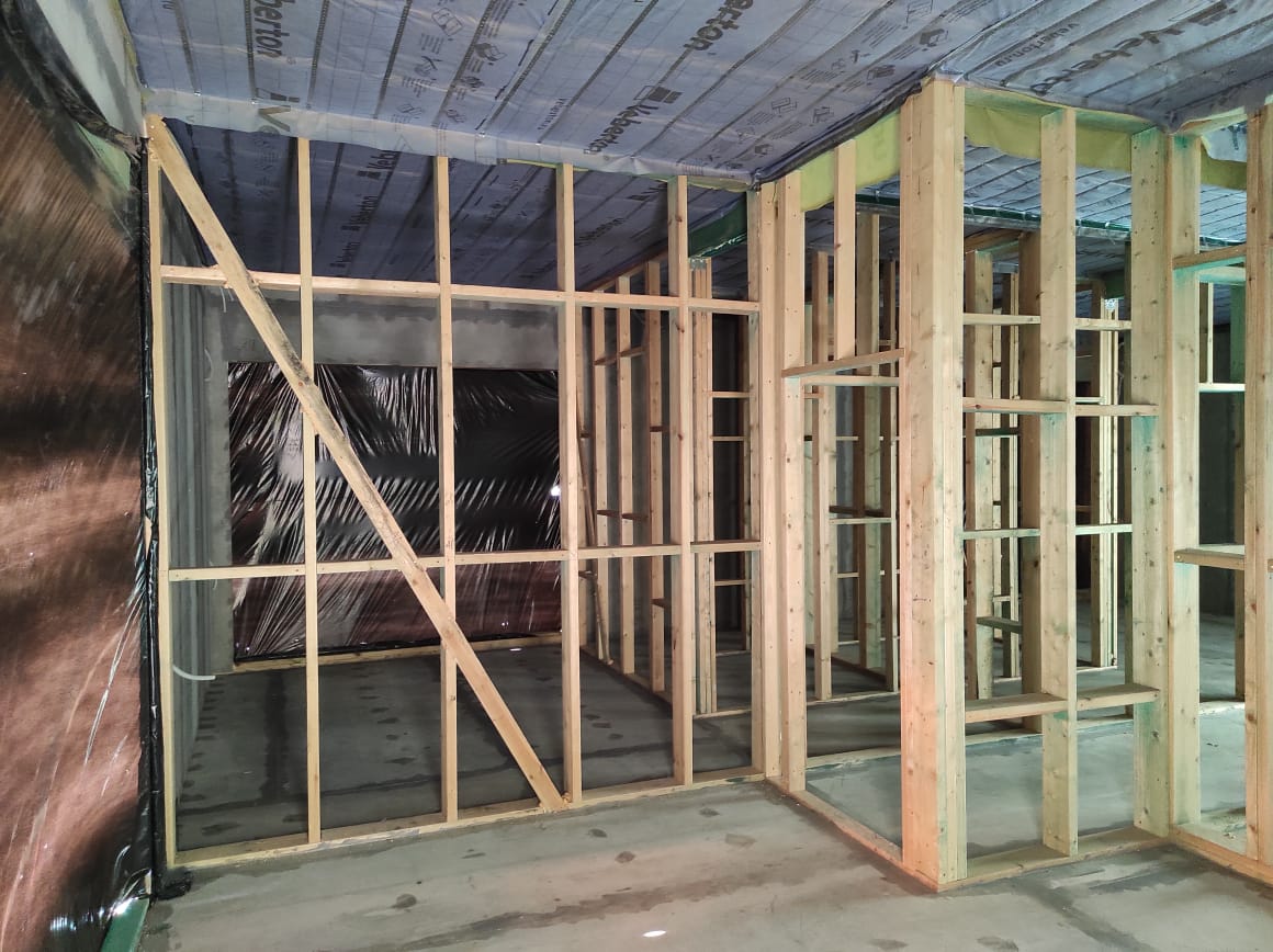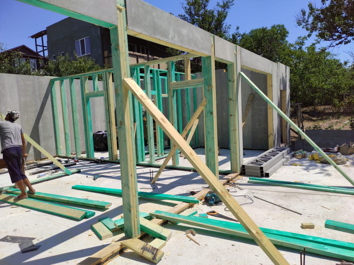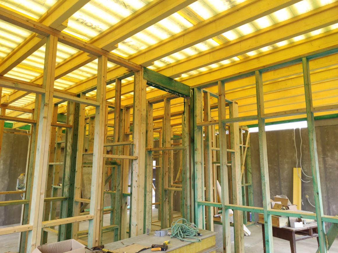 Ростверк изготовлен из калиброванного клееного бруса и защищен снаружи цементно-стружечной плитой