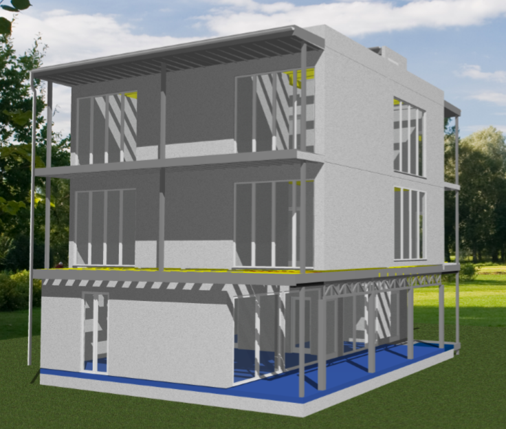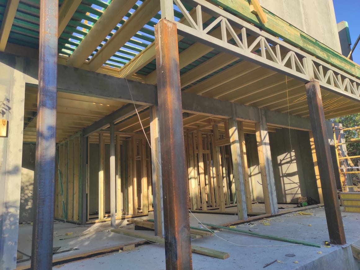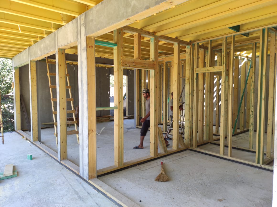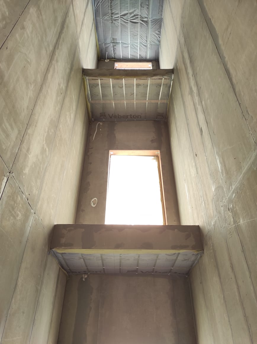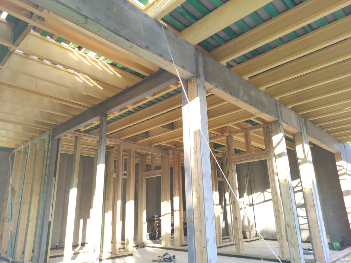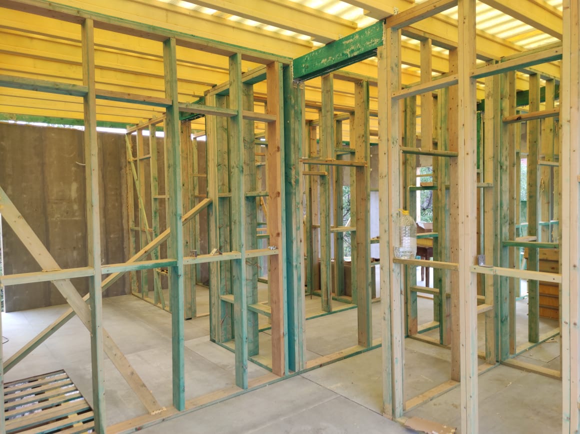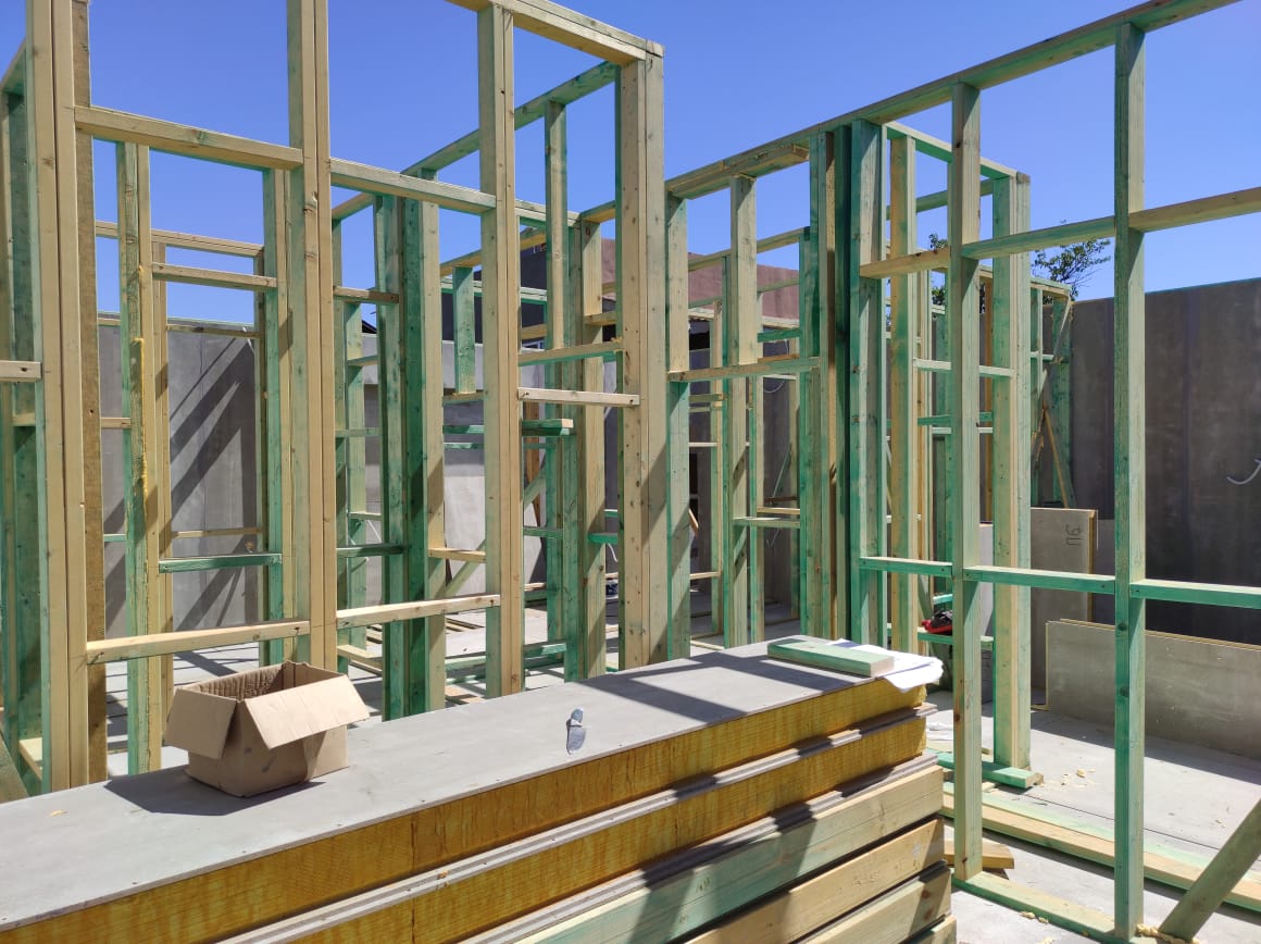 Ростверк изготовлен из калиброванного клееного бруса и защищен снаружи цементно-стружечной плитой
