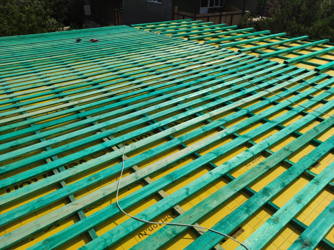Кровля может быть построена из бруса 150х50мм или SIP панелей. В качестве кровельного материала можно использовать: металлочерепицу, битумную и керамическую черепицу. Также производим кровельные шовные сэндвич-панели.