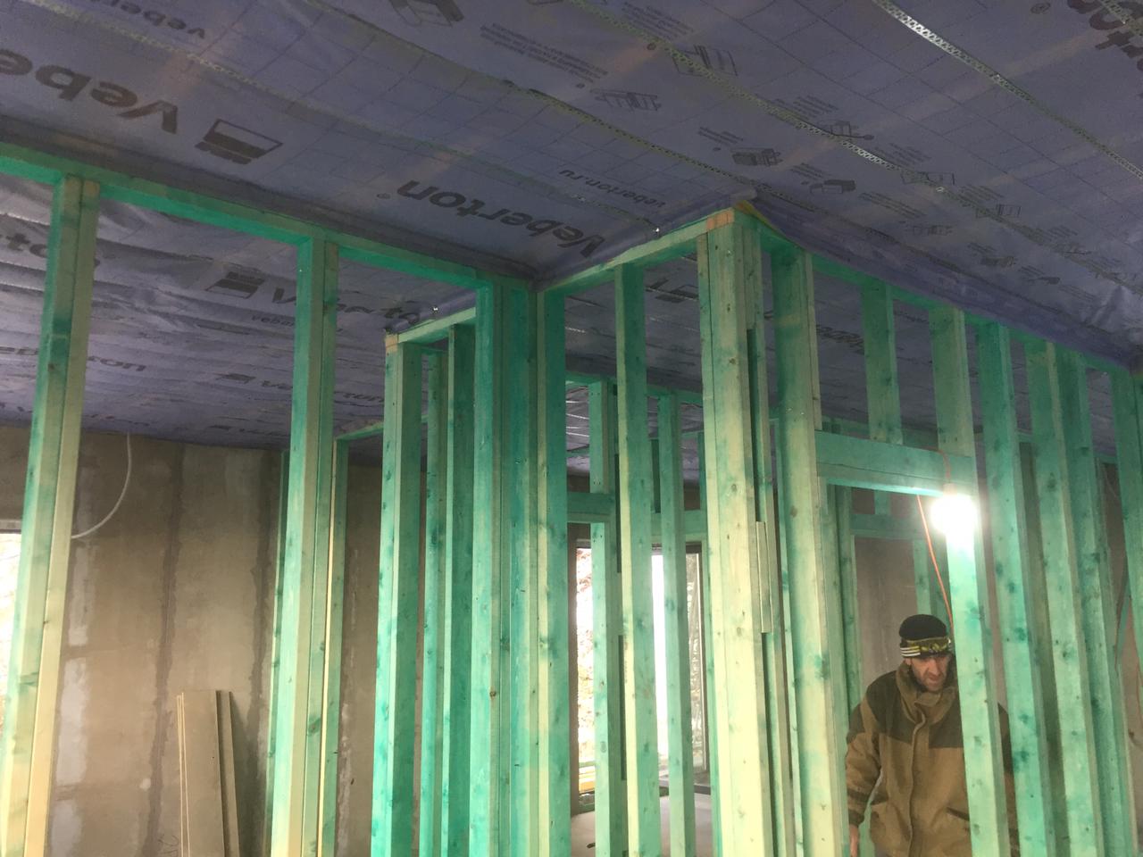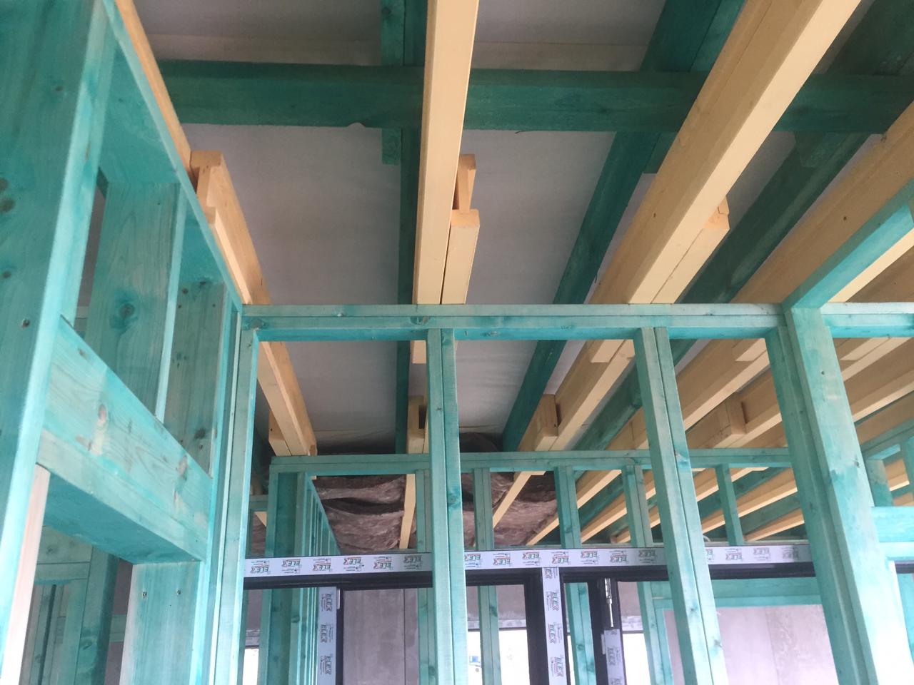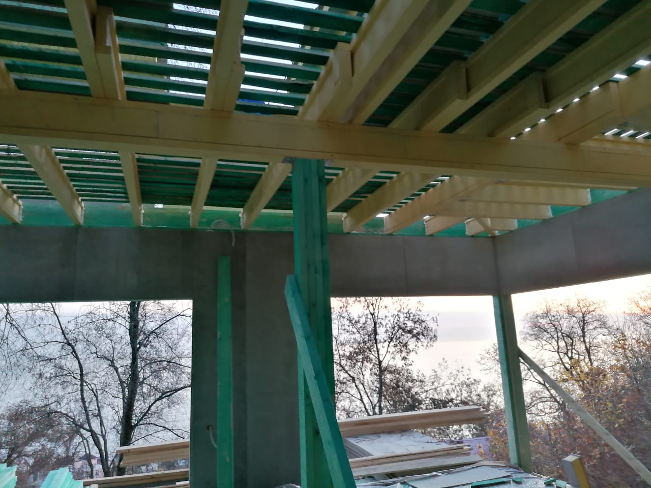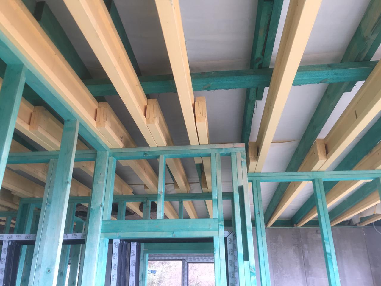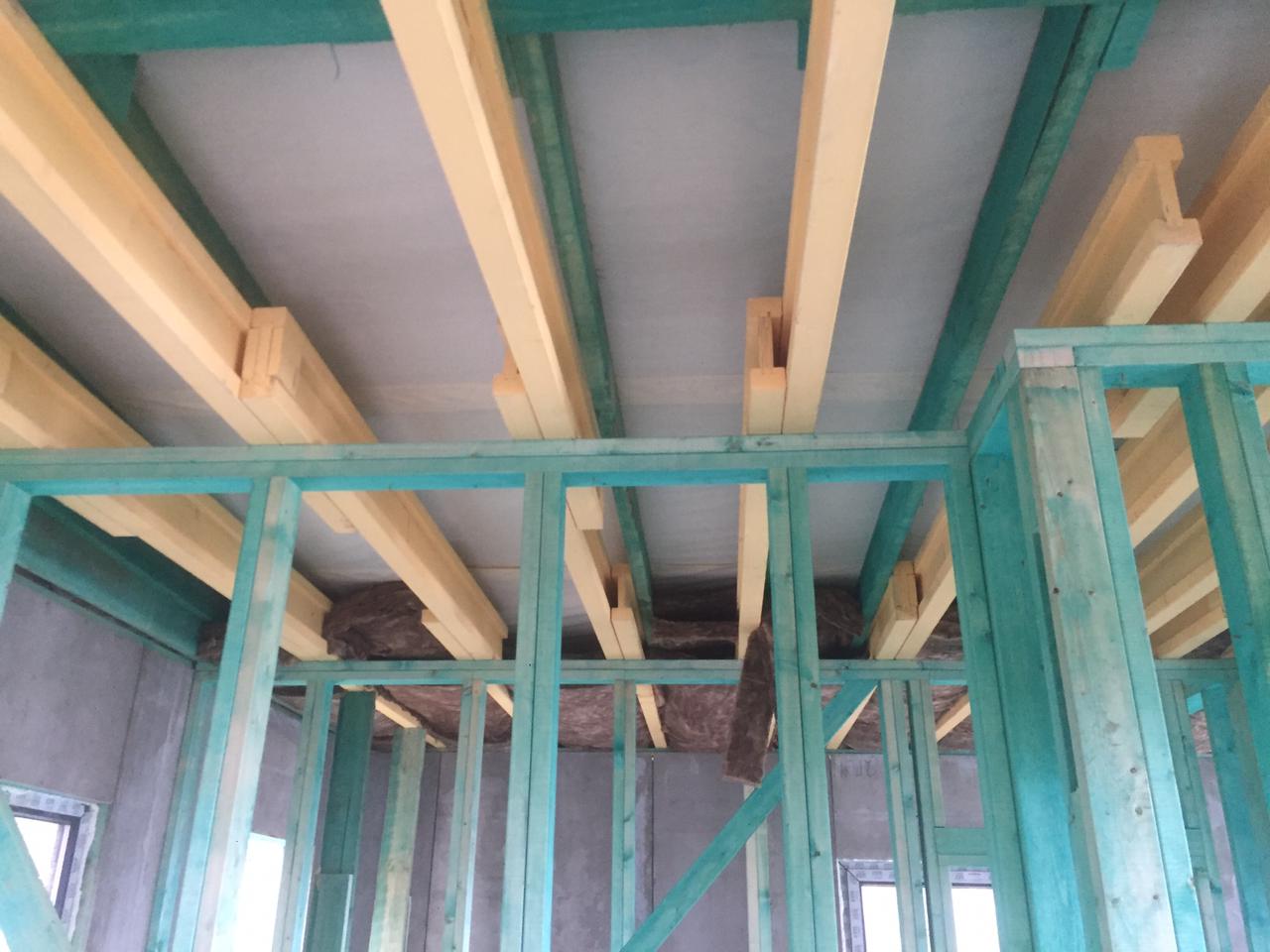 Ростверк изготовлен из калиброванного клееного бруса и защищен снаружи цементно-стружечной плитой