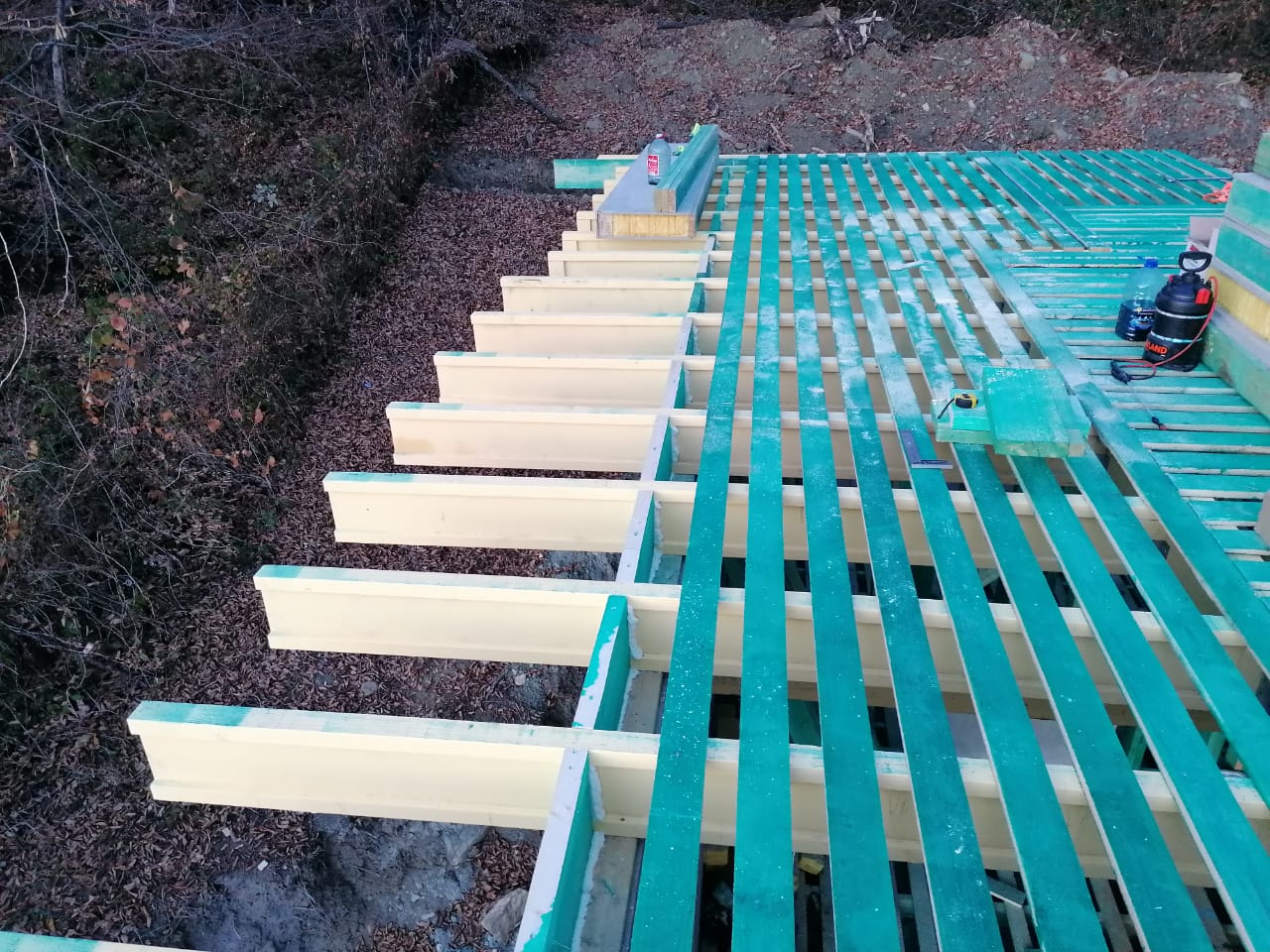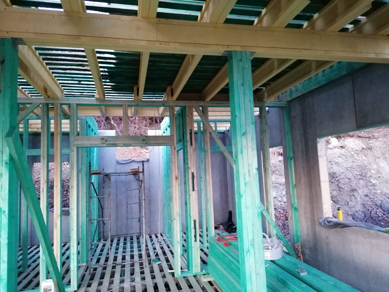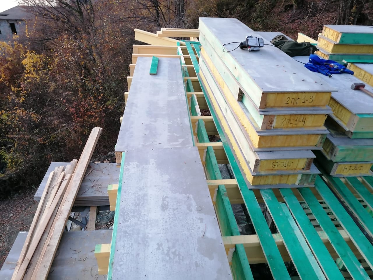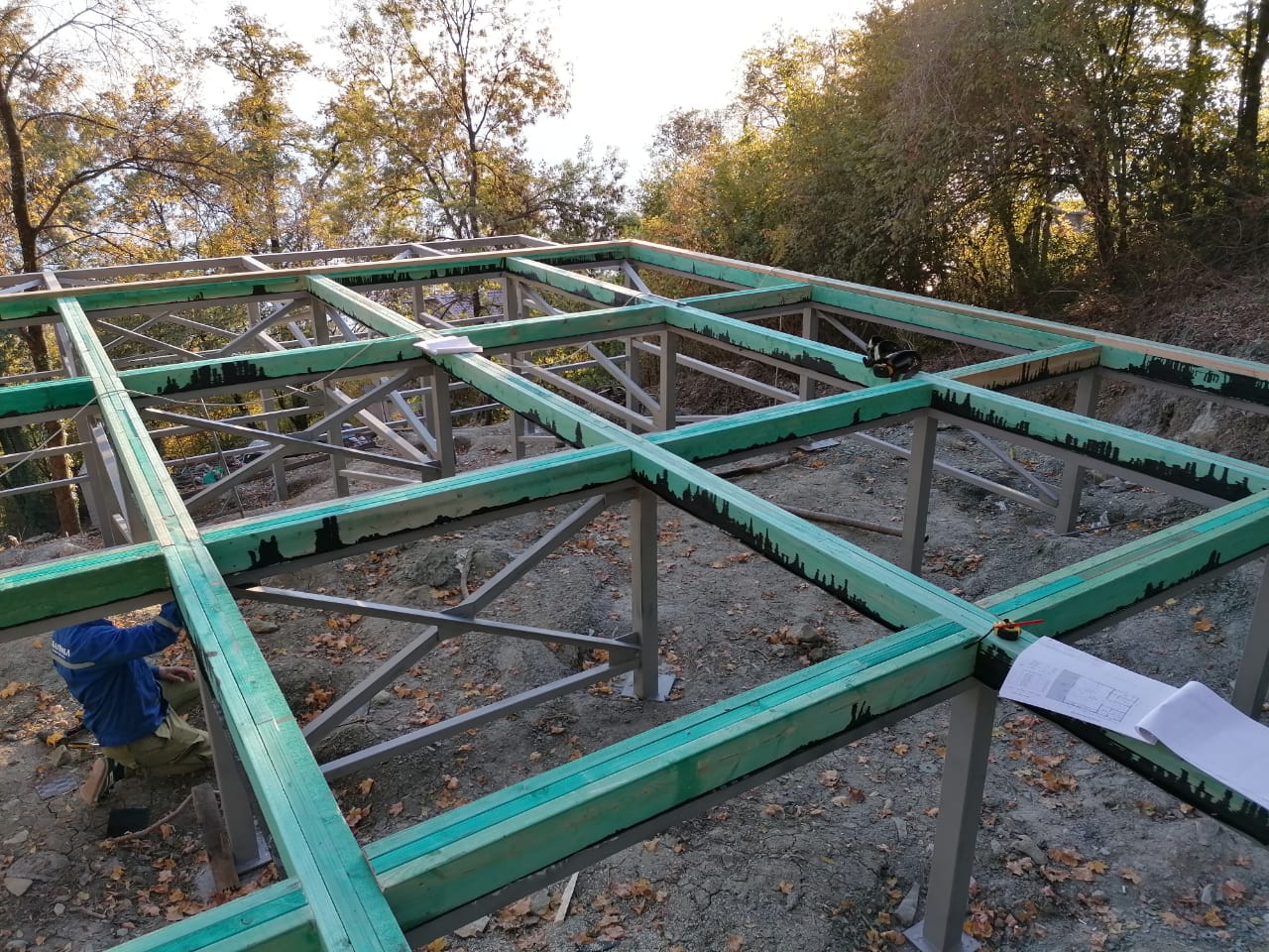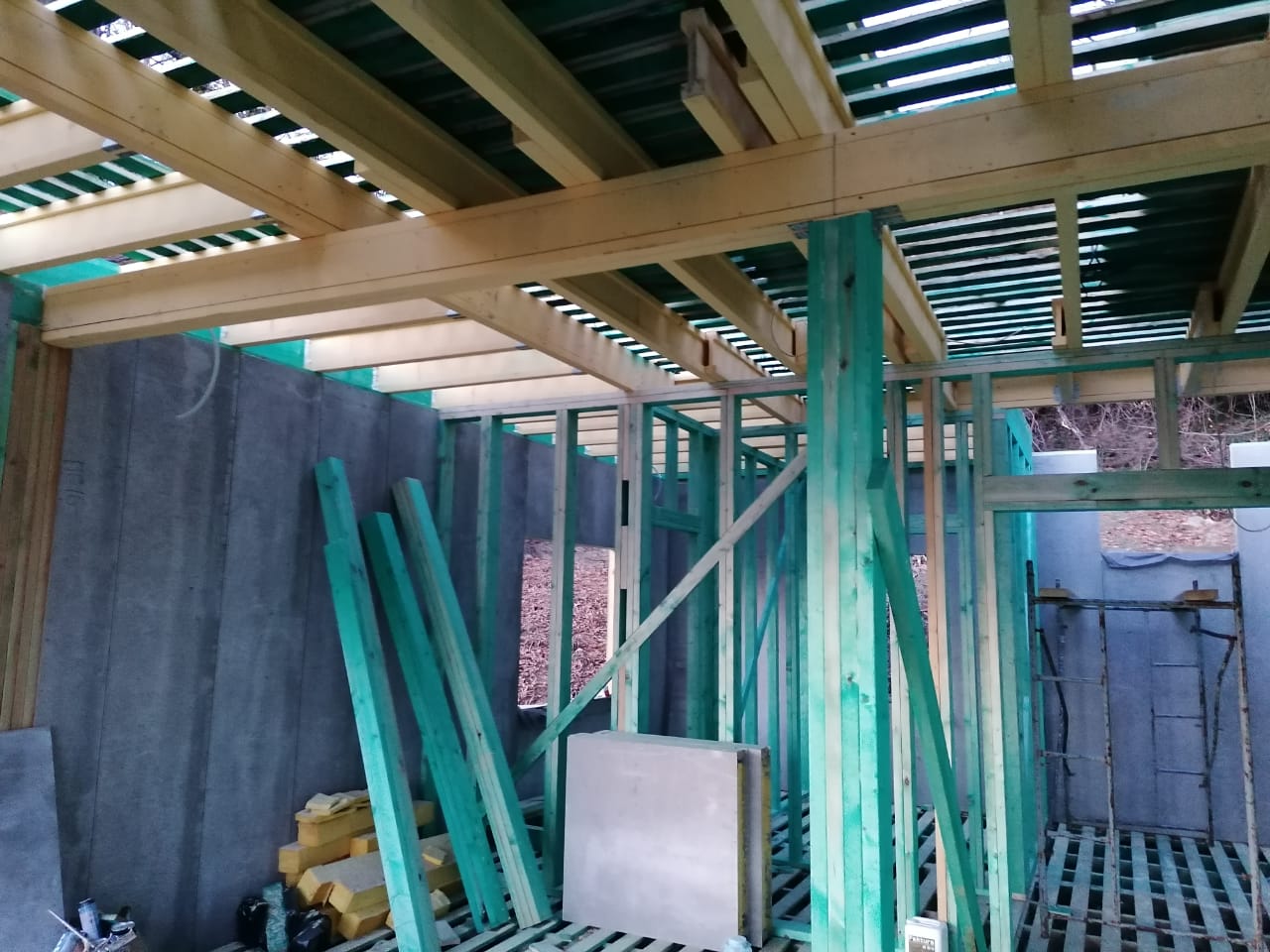 Ростверк изготовлен из калиброванного клееного бруса и защищен снаружи цементно-стружечной плитой