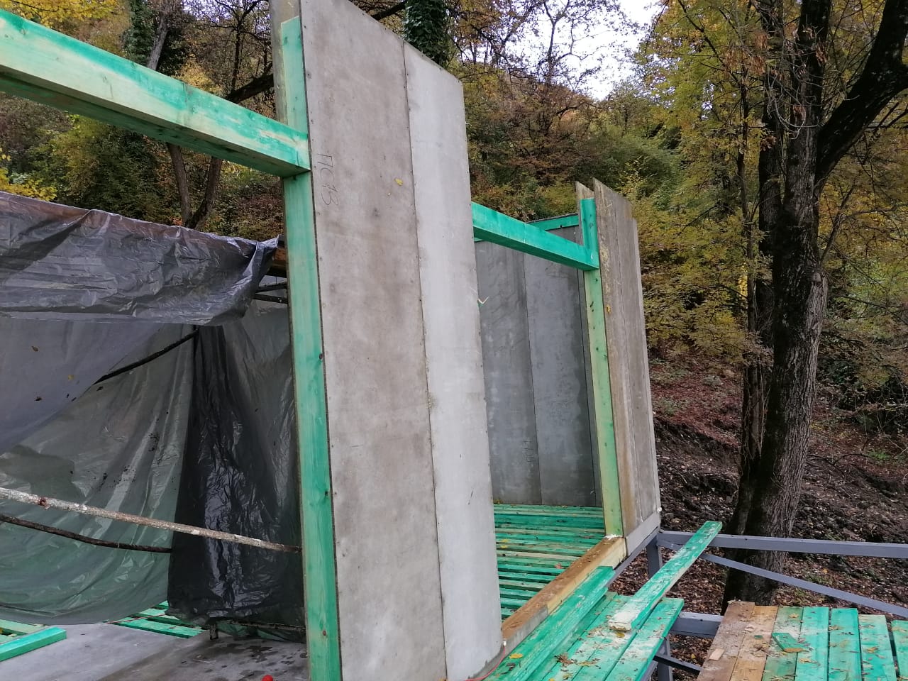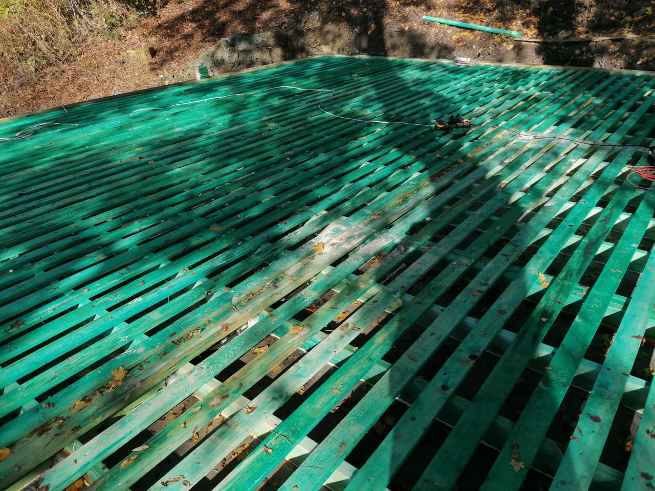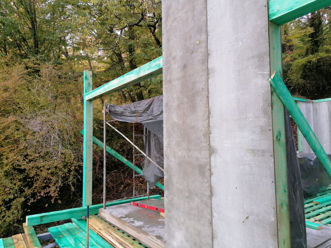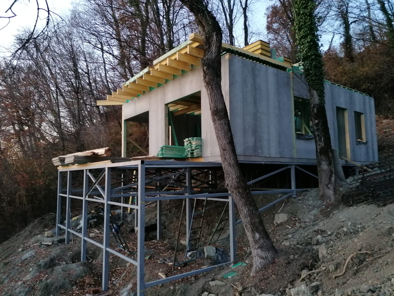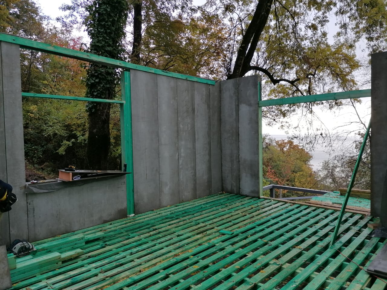 Ростверк изготовлен из калиброванного клееного бруса и защищен снаружи цементно-стружечной плитой