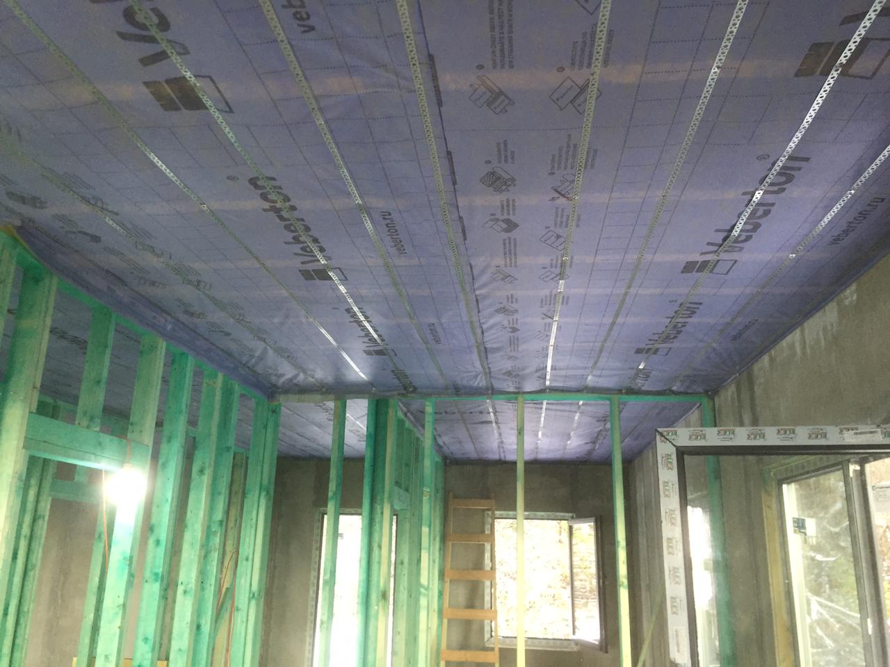 Потолок состоит из двутавровых балок 250 мм, а шаг монтажа балок - 600 мм.