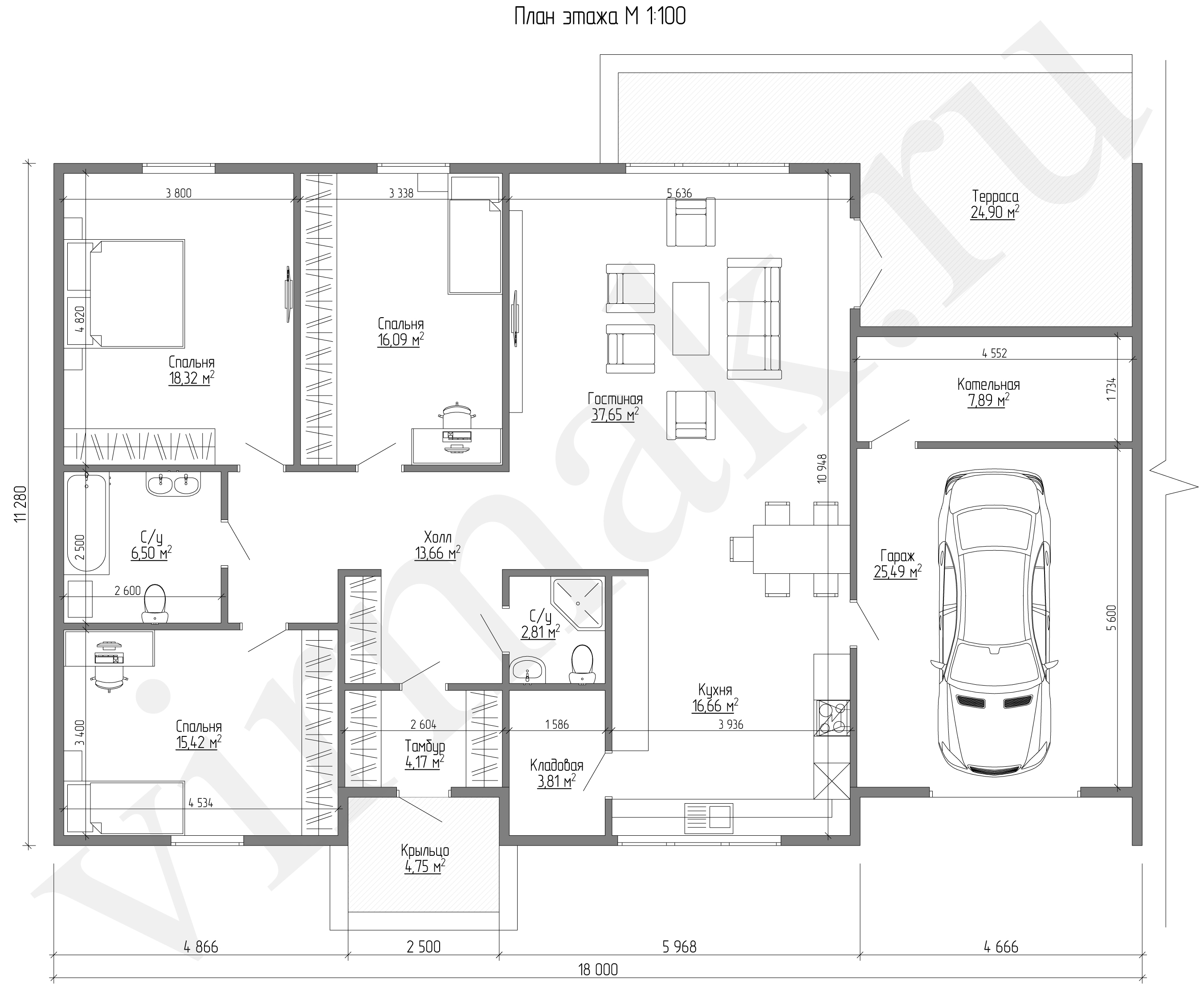 План этажа м 1:100