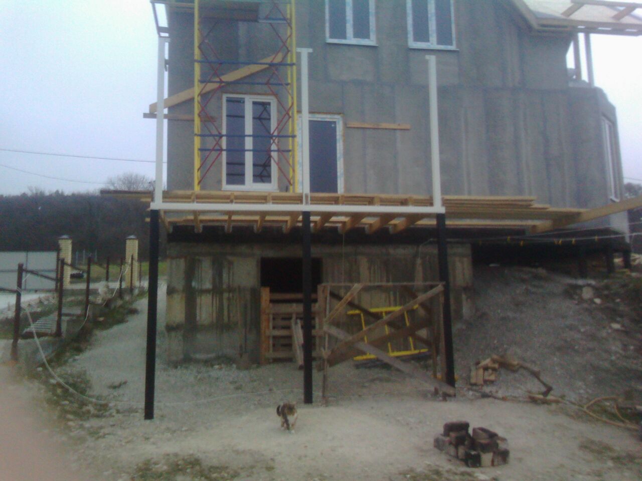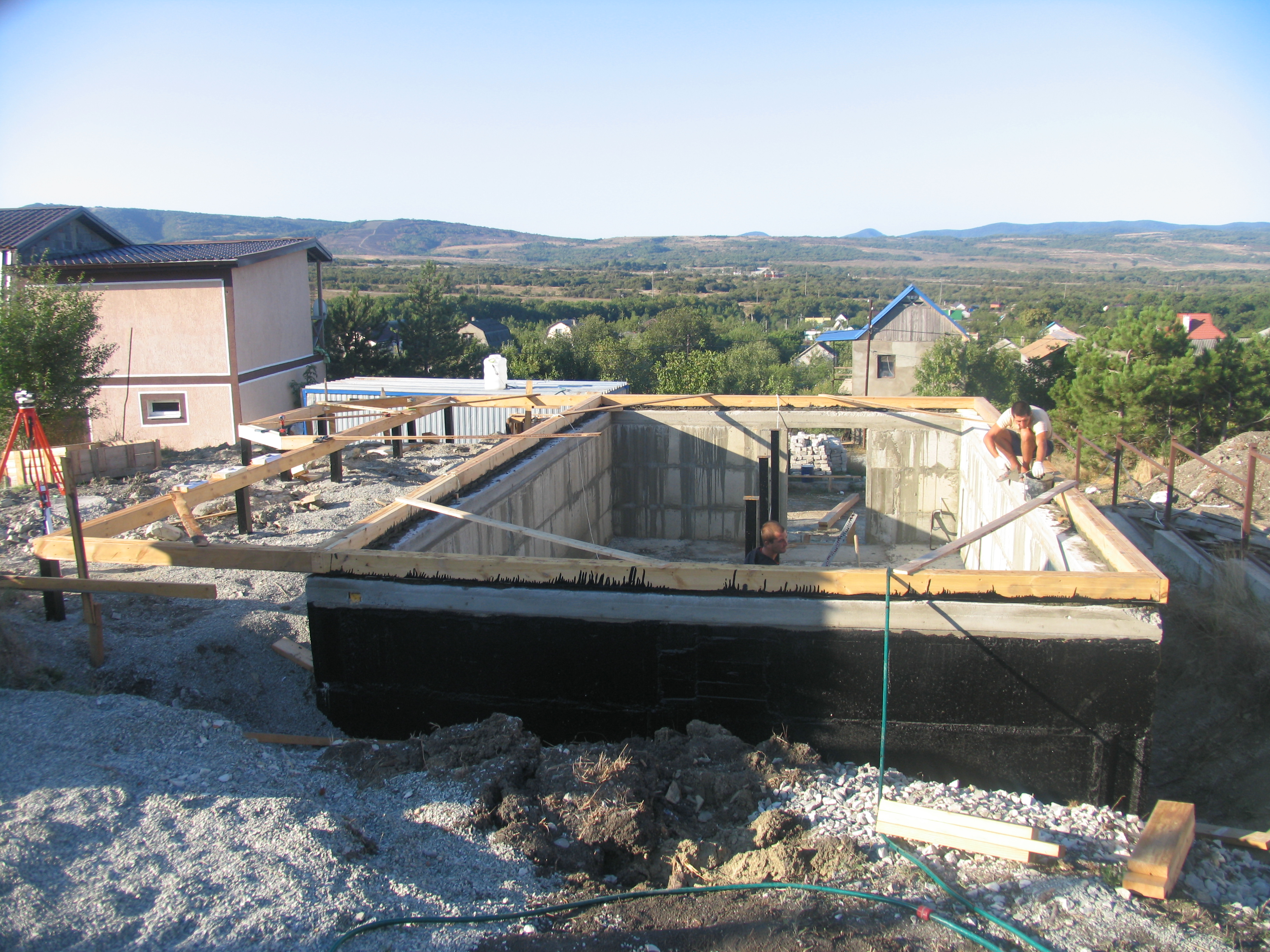 Монтаж наружных стен первого этажа и каркасов несущих перегородок