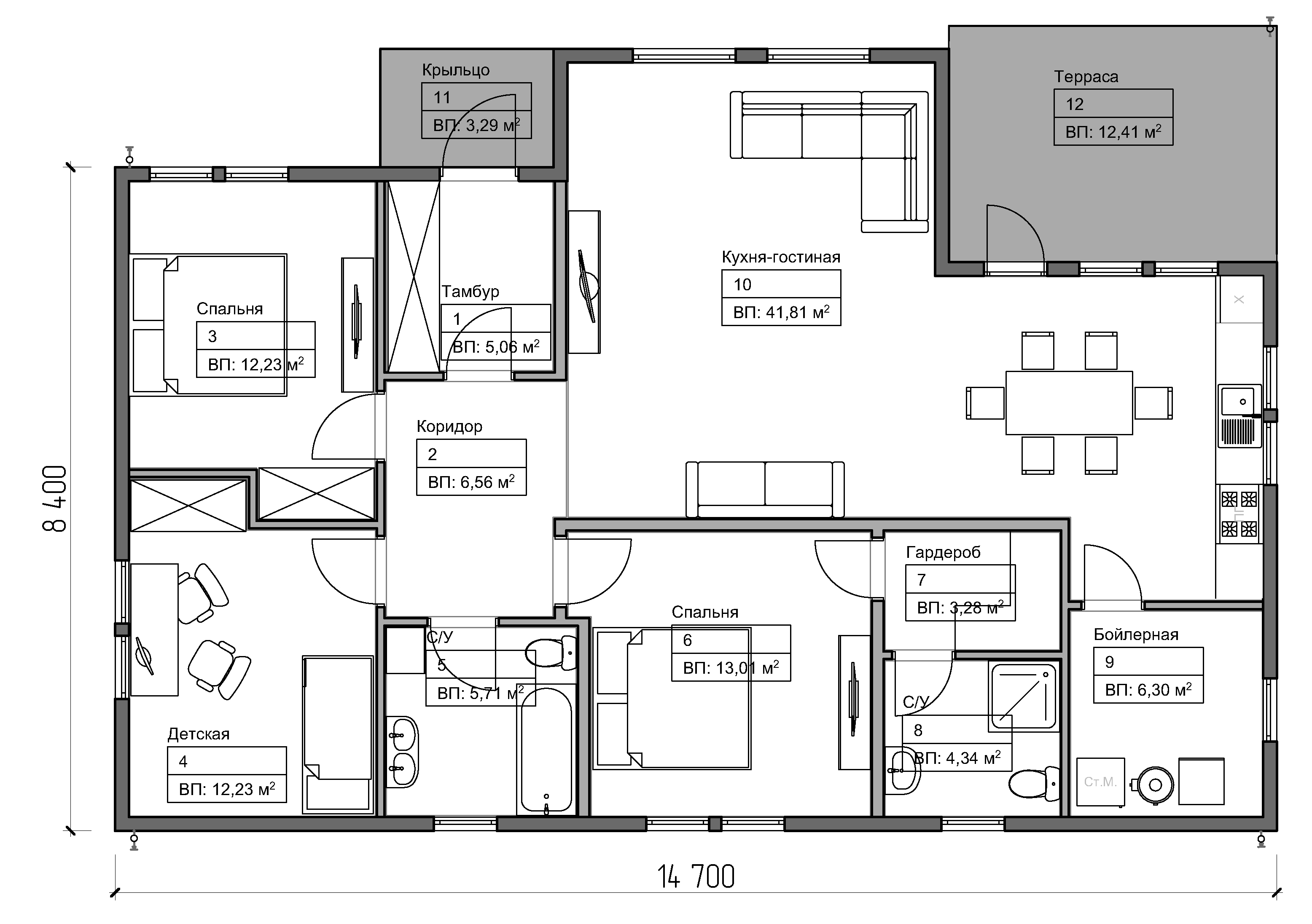 — это полностью готовый теплый контур дома. В данном случае дом полностью готов к монтажу внутренних инженерных сетей, звукоизоляции