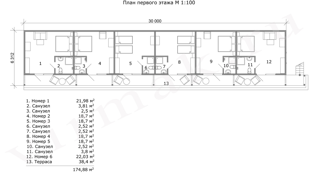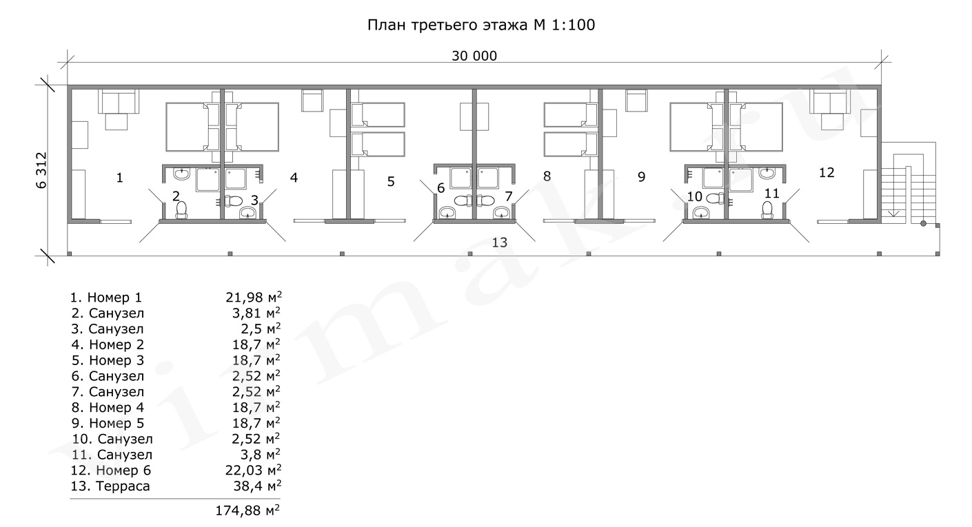 План этажа м 1:100