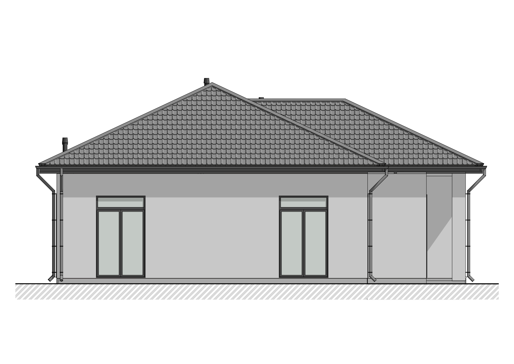 пиломатериал 1-го сорта естественной влажности, антисептированный (стропила 50*150 мм, обрешетка, поперечная обрешетка), пароизоляция А, D, утеплитель 150 мм, софиты (С-8 профиль), кровля - металлопрофиль (металлочерепица).