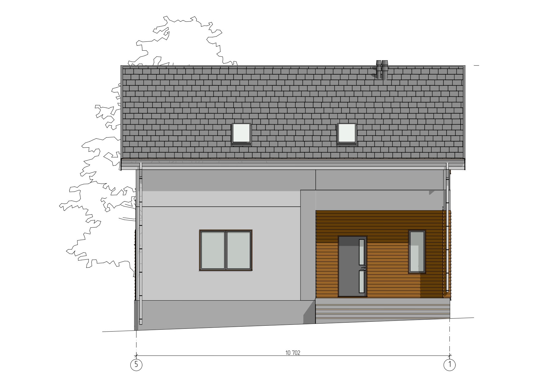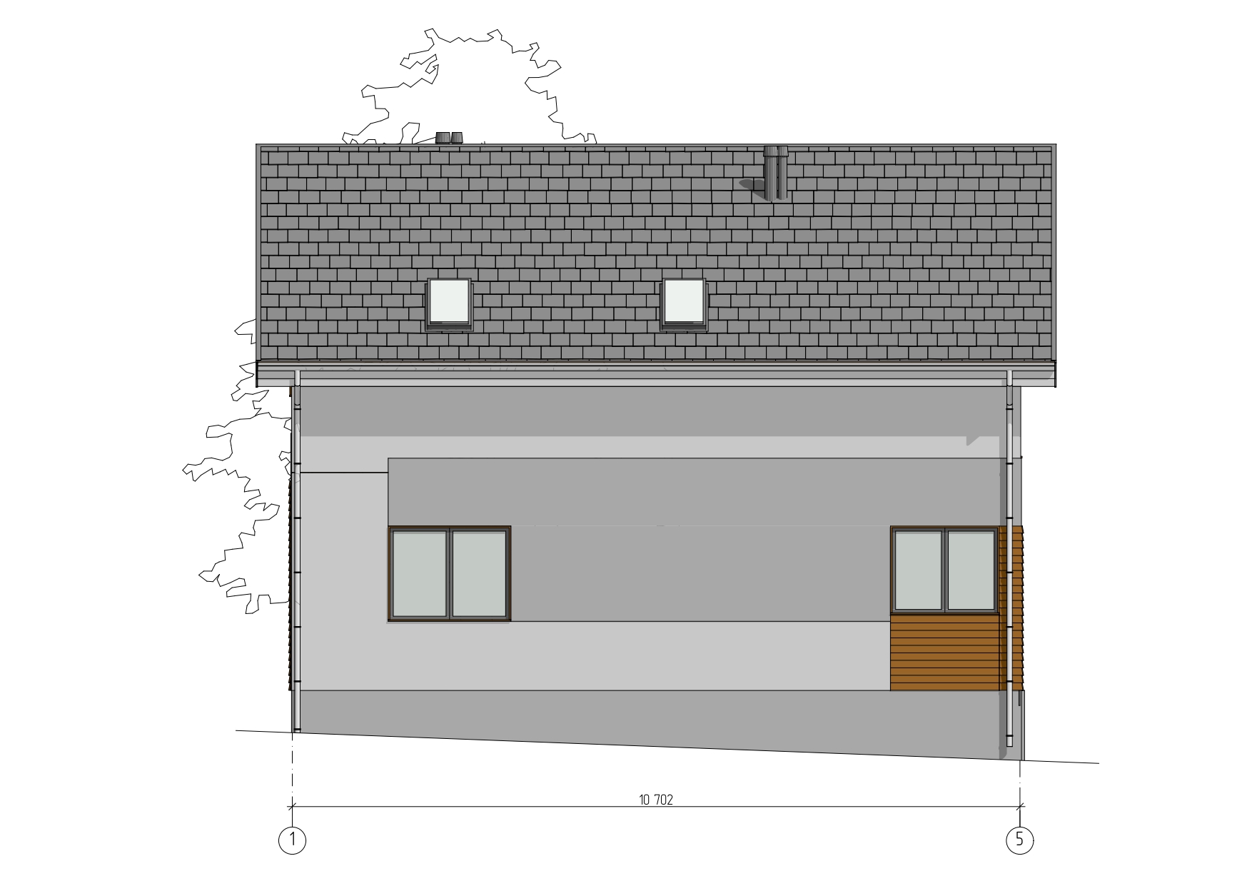 пиломатериал 1-го сорта естественной влажности, антисептированный (стропила 50*150 мм, обрешетка, поперечная обрешетка), пароизоляция А, D, утеплитель 150 мм, софиты (С-8 профиль), кровля - металлопрофиль (металлочерепица).