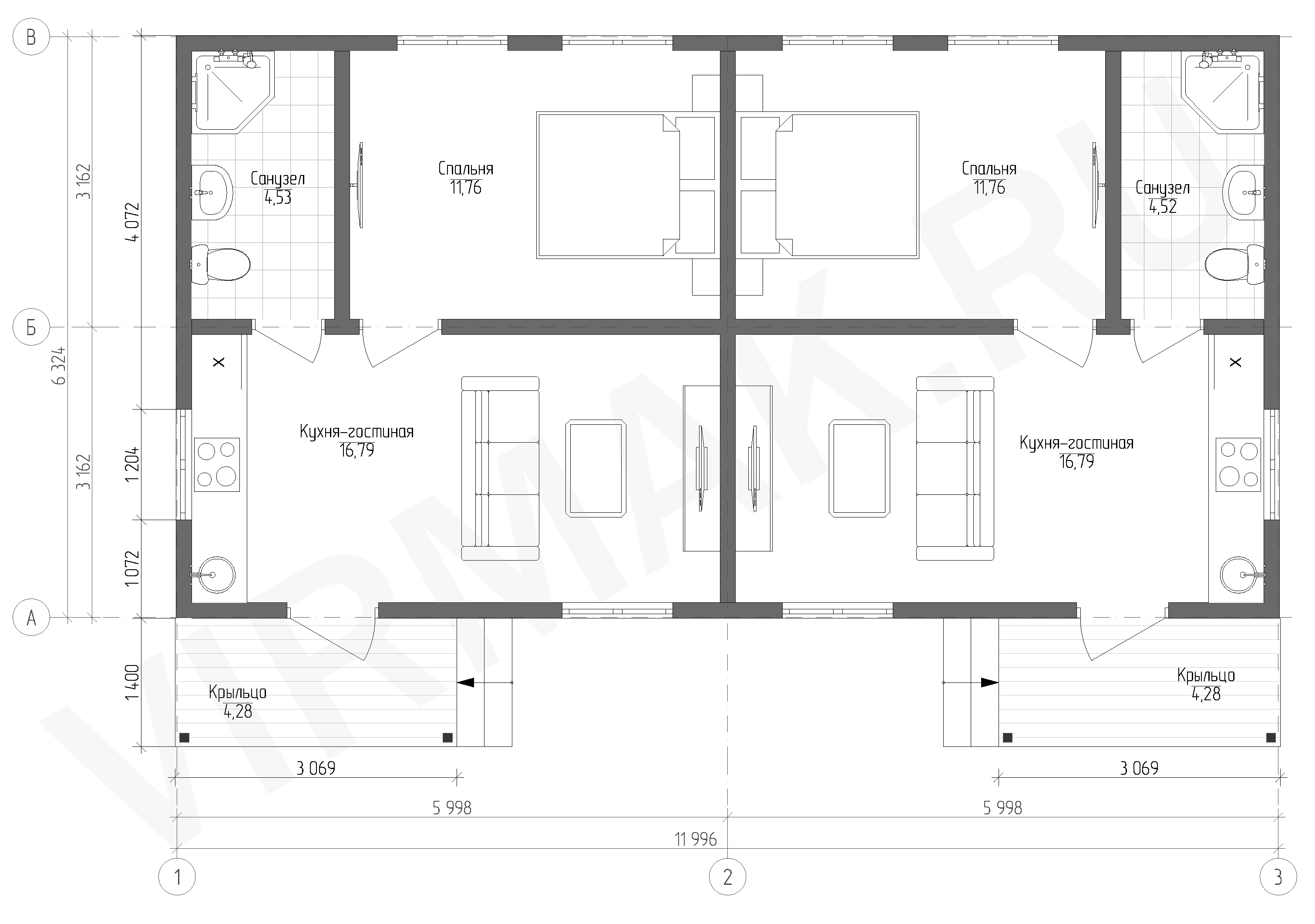 * В данную комплектацию не входит фундамент и крыша. Его тип и стоимость определяется индивидуально в зависимости от особенностей вашего участка.