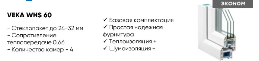 Профиль белый VEKA WXS-60 Стандарт, 2-х камерный стеклопакет от 24 мм, москитные сетки, отливы, подоконники