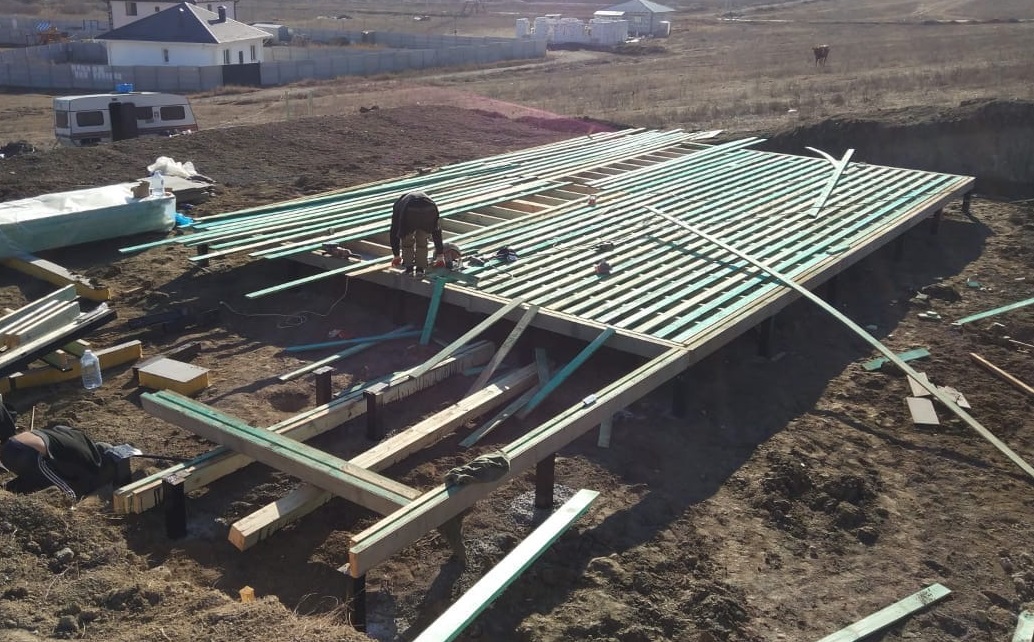 Ростверк изготовлен из калиброванного клееного бруса и защищен снаружи цементно-стружечной плитой