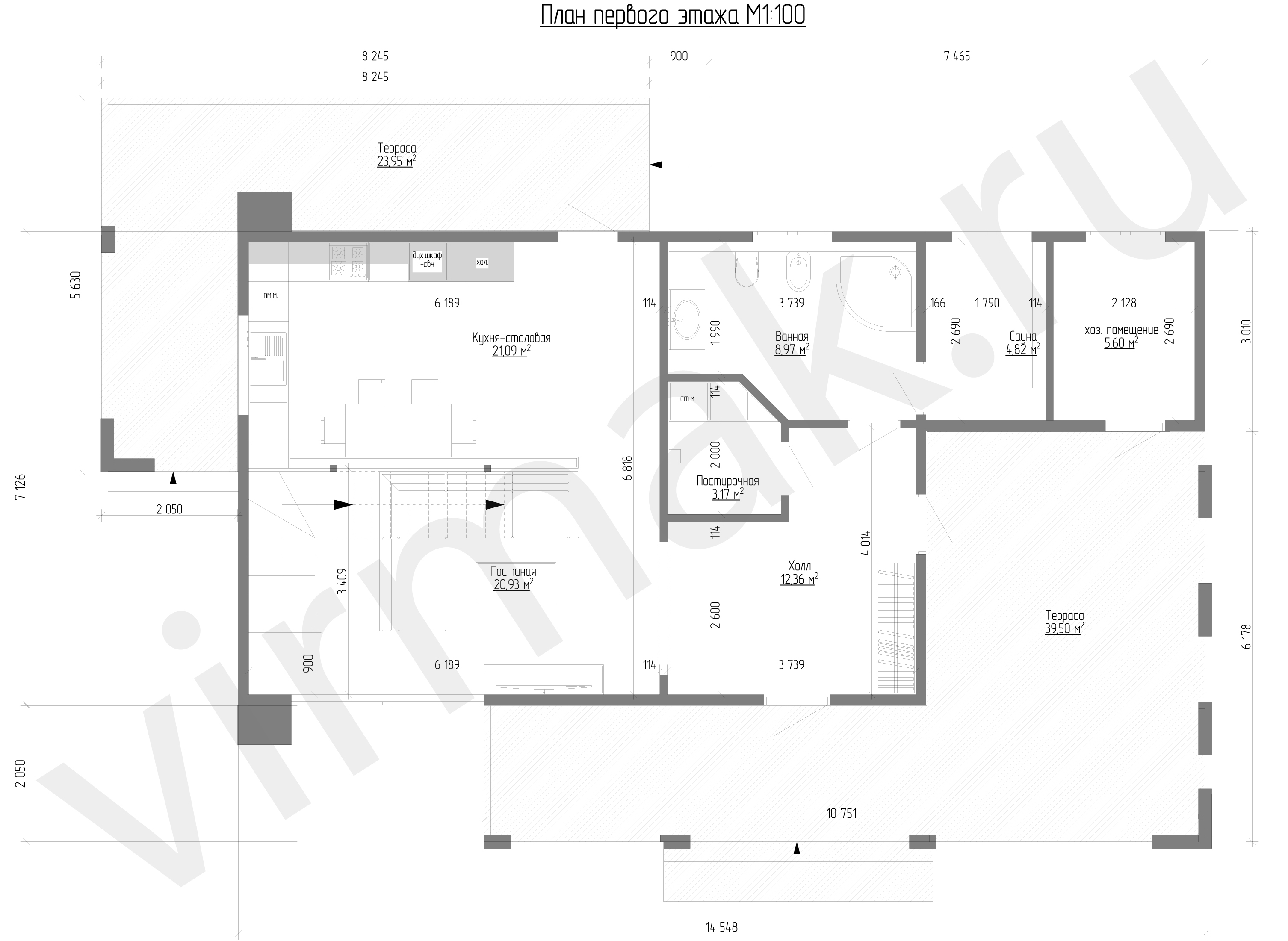* В данную комплектацию не входит фундамент и крыша. Его тип и стоимость определяется индивидуально в зависимости от особенностей вашего участка.