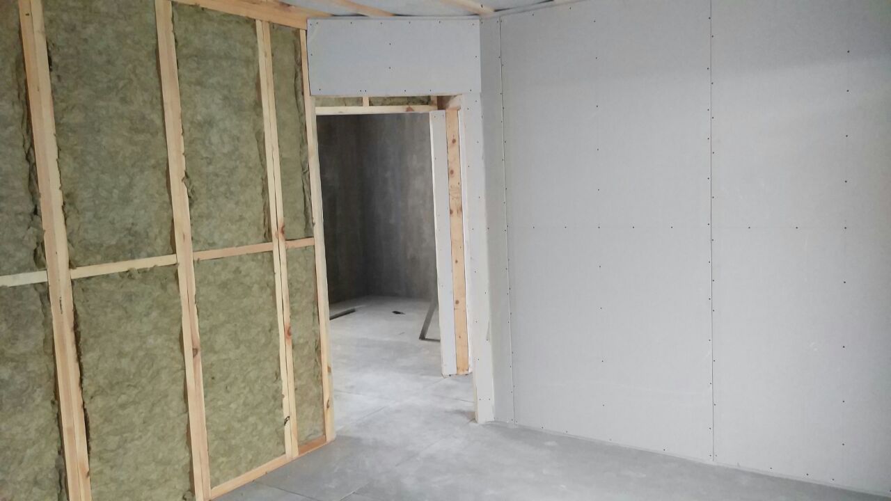 Устройство внутренних каркасных (не несущих) перегородок с монтажом листовых материалов (ГКЛ, ГСПВ, ЦСП) и устройством утеплителя.