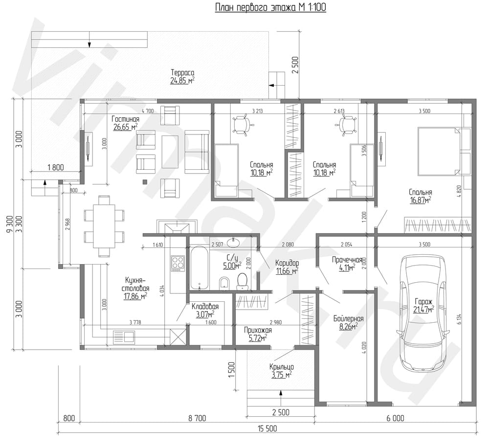* В данную комплектацию не входит фундамент и крыша. Его тип и стоимость определяется индивидуально в зависимости от особенностей вашего участка.
